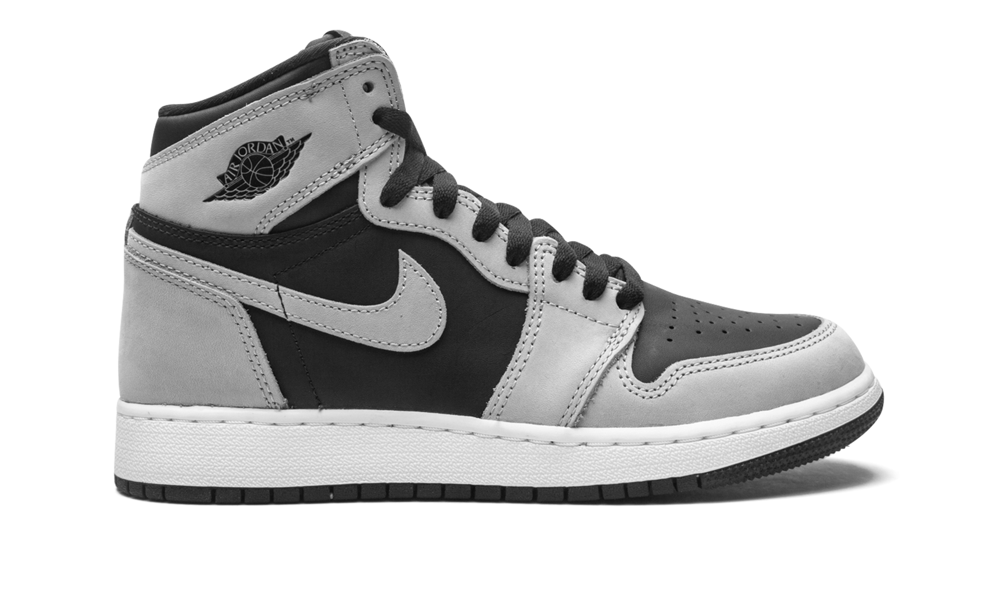 The Air Jordan 1 High “Shadow 2.0â€?is the youth sizing of the colorway that is inspired by the original black-and-grey "Shadow" edition of Michael Jordan's first signature shoe. The “Shadow 2.0â€?is an updated edition of the versatile colorway. On the “Shadow 2.0.â€?black leather appears on the mid-panel and on the perforated toe. The first “Shadowâ€?featured grey leather on the toebox. Moreover. the “Shadow 2.0â€?dons grey leather on the forefoot and eyelets. The “OGâ€?“Shadowâ€?displayed black leather on those panels. Grey leather can be found on the collar. heel. and Swoosh. A black “Wingsâ€?logo graces the collar and grey “Nike Airâ€?on the tongue tag on the black nylon tongue. It should be noted that the grey leather panels found on the “Shadow 2.0â€?are lighter in color than the original grey leather on the first “Shadow.â€?Release date: May 15. 2021.