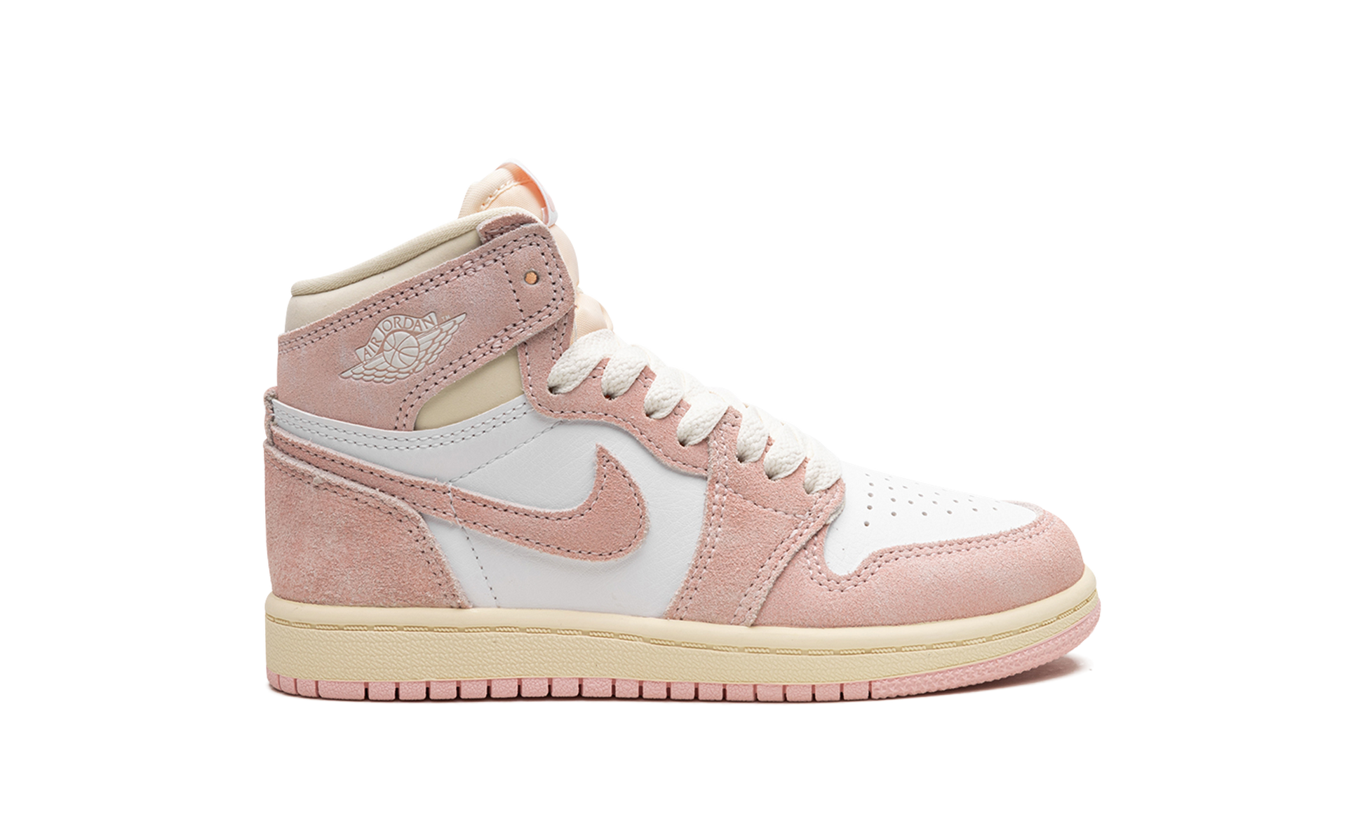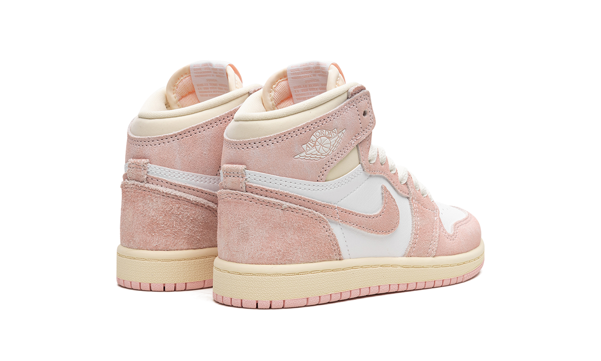 The Air Jordan 1 High OG PS “Washed Pinkâ€?is the Preschool sizing for the colorway of Michael Jordan's first signature shoe with a warm weather vibe. The “Washed Pinkâ€?is complete with a white leather base with Washed Pink suede overlays and Swoosh branding on the sides. A “Wingsâ€?logo appears on the collar and “Nike Airâ€?detailing is found on the tongue tag. The shoe's cream-colored leather collar and midsole gives the design an aged. vintage look. Release date: April 22. 2023