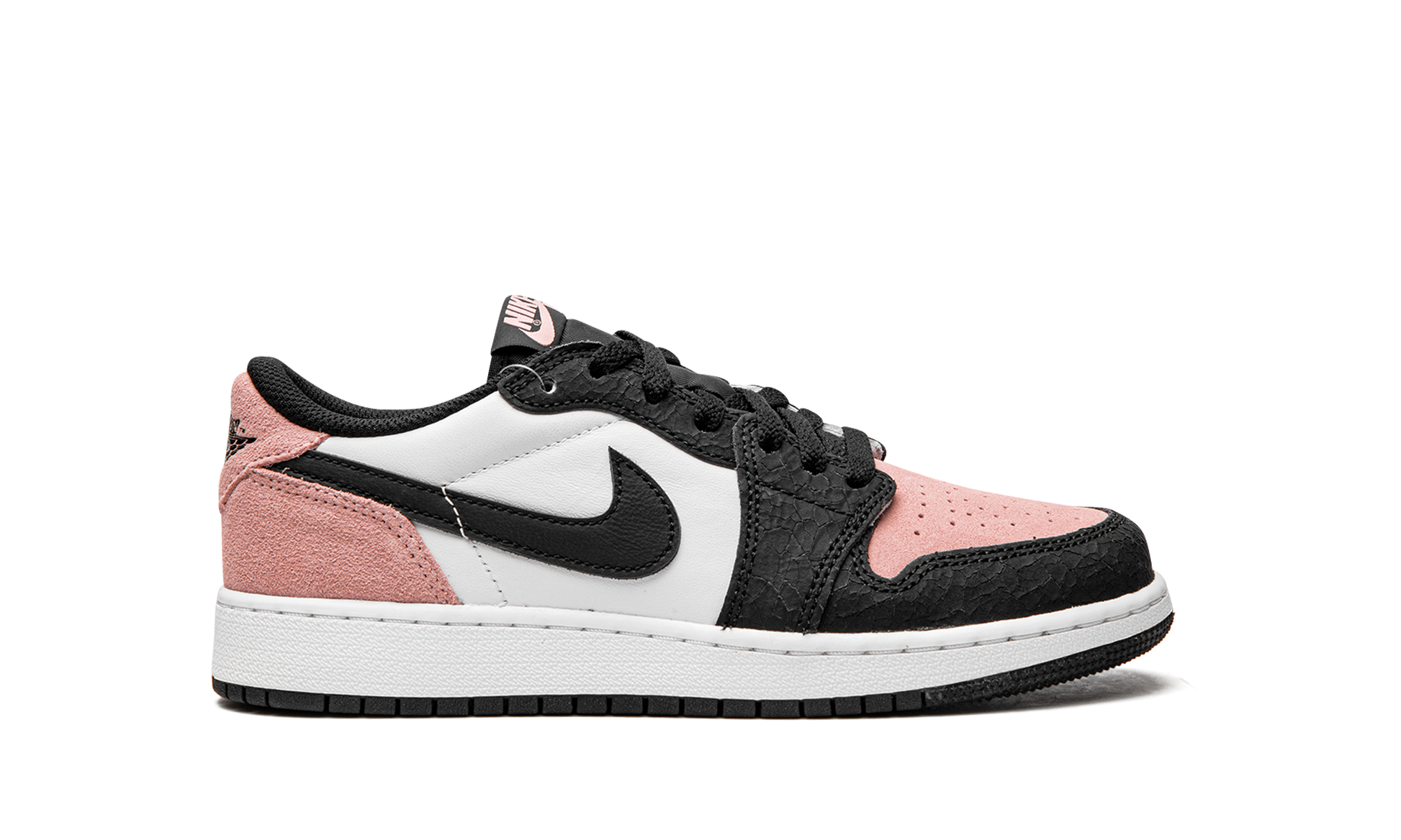 The Air Jordan 1 Low OG “Bleached Coralâ€?is the kids' version of a clean look for the original retro basketball shoe primed for the warm weather season. The “Bleached Coralâ€?was released in July 2022 and is a summer-ready look for the version of Michael Jordan's first signature shoe that replicates the appearance of its original low-top design. The shoe features a “Black Toeâ€?Air Jordan 1-inspired look with its black cracked leather toe and contrasting pink suede toe box and heel panels. White leather appears on the mid-panel and a black leather Swoosh is found on either side of the shoe. Release date: July 2. 2022