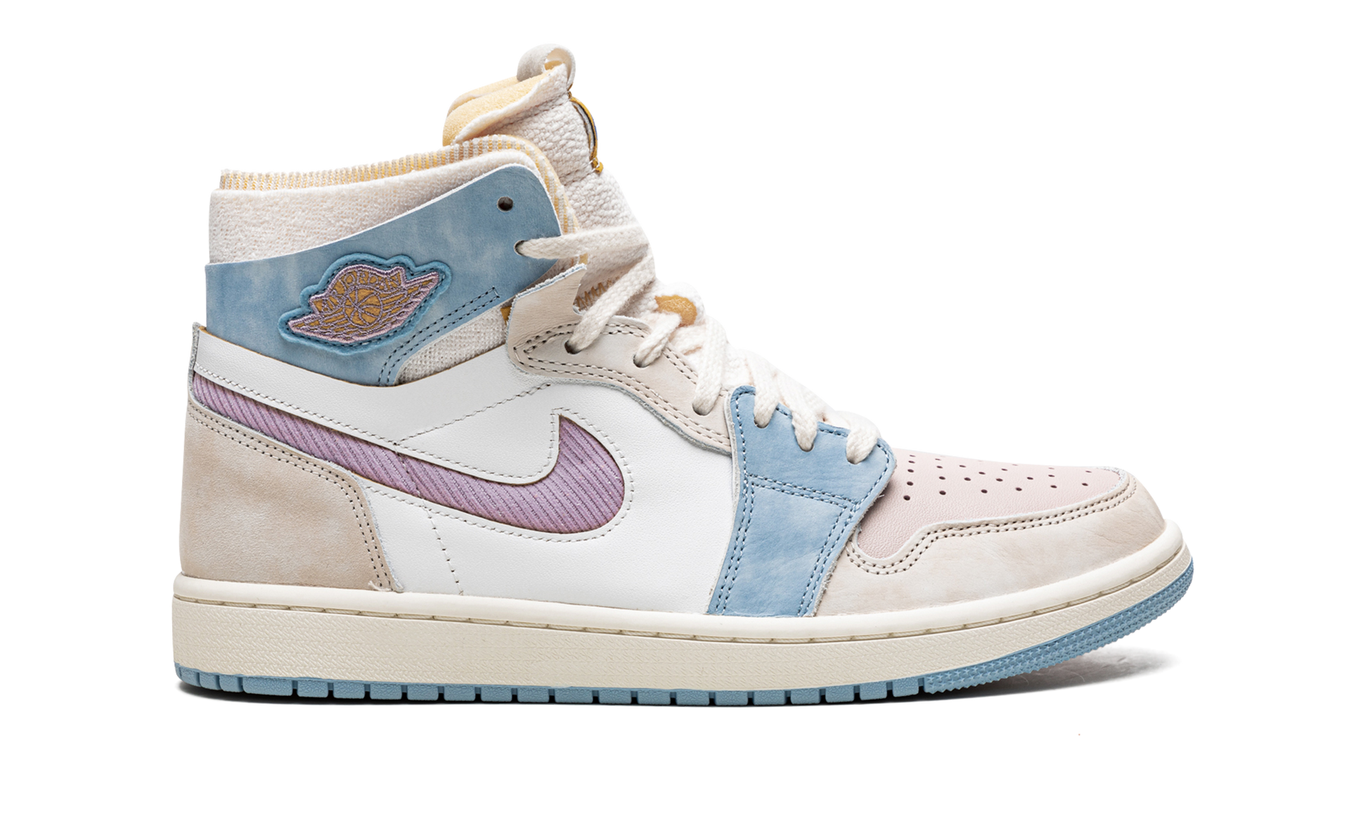 The Women's Air Jordan 1 High Zoom CMFT “Pink Oxfordâ€?is a women's-exclusive colorway of the alternate version of the Jordan 1 with updates to its look and performance specifications. The Jordan 1 High Zoom Comfort debuted in 2020 as part of Jordan's continuous efforts to expand the appearance and performance components of the classic shoe. Armed with even more padding around the ankle collar. the Jordan 1 High Zoom Comfort also features different materials and colors for a fresh new vibe. On the “Pink Oxford.â€?light pink suede overlays can be found on the toe cap. upper eyelets. and heel. A light purple nubuck material is located on the perforated toe and lower eyelet panel. Jordan Brand supplies the shoe with a plum-colored Swoosh on the sides and a plum “Wingsâ€?logo on the light blue paneling found on the collar. A Zoom Air cushioning unit is embedded within the midsole for more comfort. replacing the standard Air unit found in the original Jordan 1 High OG model.