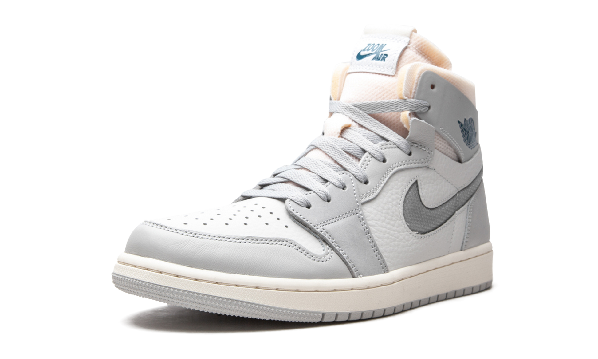 The Air Jordan 1 Zoom CMFT “Londonâ€?is a steely colorway of Michael Jordan's first signature shoe that was released exclusively in the United Kingdom. The Jordan 1 Zoom CMFT is an alternate version of the iconic high-top retro basketball shoe with upgraded Zoom Air technology embedded in its midsole. Other modifications such as exposed foam padding on the tongue and mesh on the collar differentiate the model from its Jordan 1 relatives. As for the design of the “London.â€?the color block is influenced by the city's moody. grey. overcast weather. Light Smoke Grey leather overlays appear on the forefoot. eyelets. collar. and heel. White tumbled leather forms the base. A dotted grey tumbled leather Swoosh can be found on either side and a blue “Wingsâ€?logo is located on the collar. A “Zoom Airâ€?insignia is printed on the patch stitched onto the light pink mesh tongue. replacing the standard “Airâ€?detailing found on the original Jordan 1 model. As previously mentioned. Zoom Air technology is encased within the vintage inspired cream midsole for all-day comfort. The Air Jordan 1 Zoom CMFT “Londonâ€?was released exclusively in the United Kingdom in 2021.