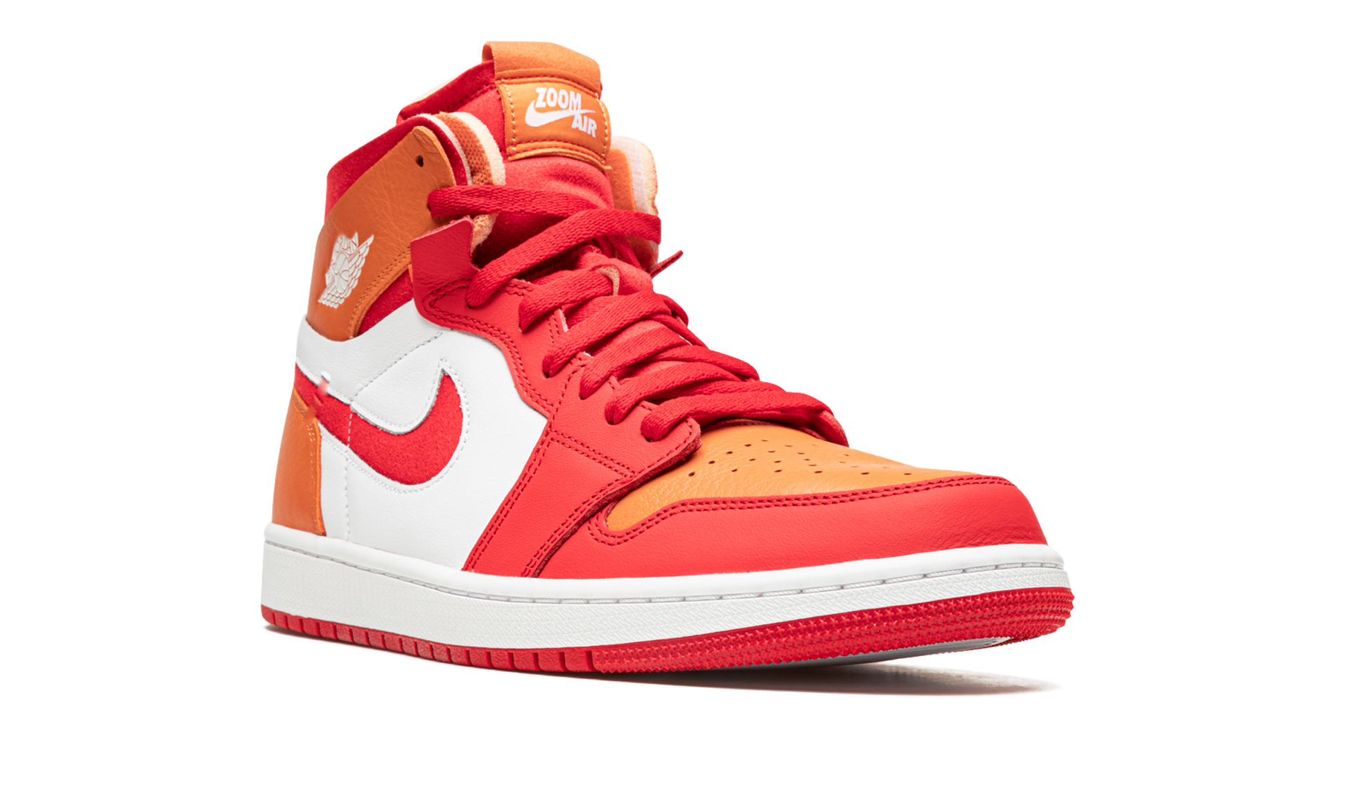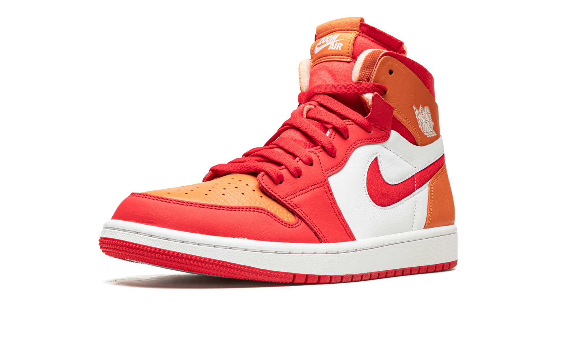The Women's Air Jordan 1 High Zoom CMFT “Fire Red/Hot Curryâ€?is a hot and spicy colorway of the alternate version of the iconic Jordan 1. The Air Jordan 1 Zoom Comfort is a modern take on the classic basketball and lifestyle shoe with design updates that include a new Zoom Air cushioned midsole and an ankle collar with even more padding than that of the Air Jordan 1 High OG model. The design features a fiery look. with Hot Curry-colored leather appearing on the perforated toe. collar. and heel. Bold Fire Red leather is found on the toe cap. forefoot. eyelets. and collar underlay. The blazing red hue is also found on the Swoosh logo on either side. A white “Wingsâ€?logo appears on the collar. Release date: July 14. 2022
