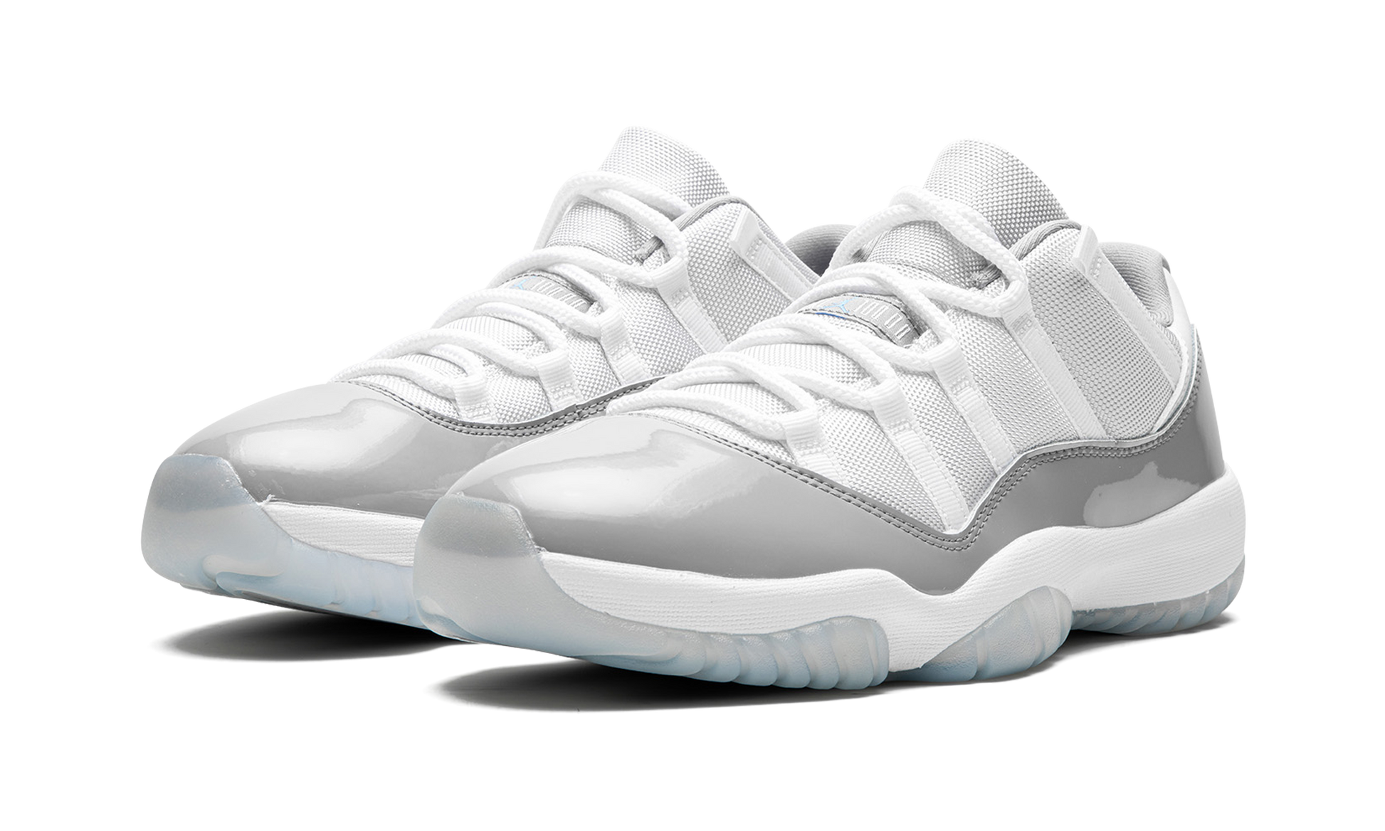 The Air Jordan 11 Low “Cement Greyâ€?is a clean. neutral colorway of Michael Jordan's eleventh signature shoe in its low-top form. The design features a white mesh build with a contrasting grey patent leather mudguard. Classic “JORDAN JUMPMANâ€?branding is found on the white mesh tongue. â€?3â€?insignia is on the heel. Underfoot. the shoe's white foam midsole is paired with an icy blue translucent rubber outsole. Release date: April 1. 2023