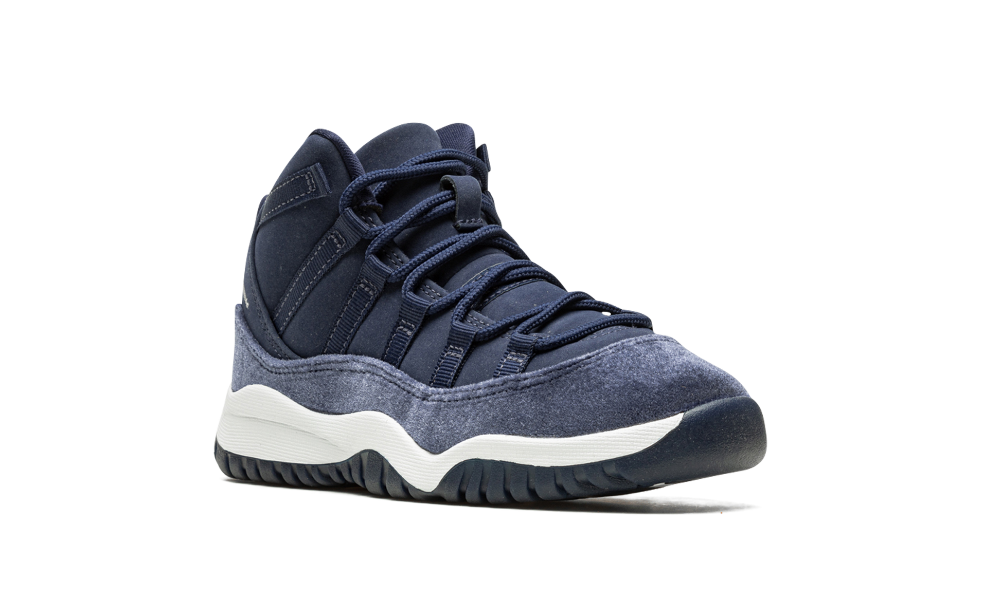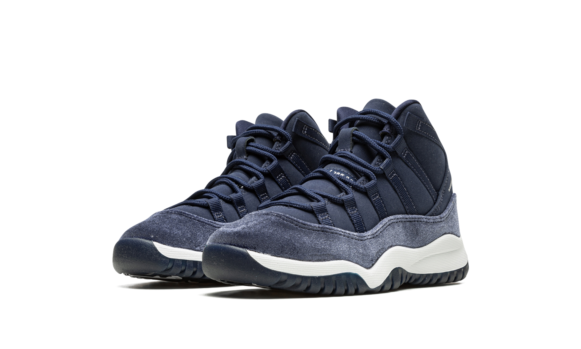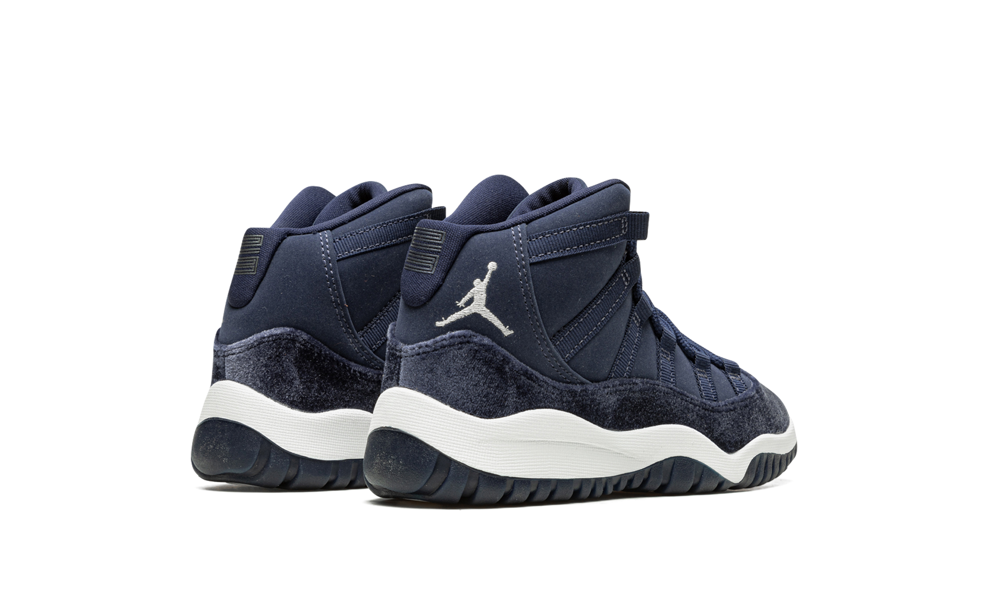 The Air Jordan 11 Velvet PS “Midnight Navy" is the preschool sizing of the colorway of the iconic basketball shoe with a luxury-inspired look. The “Midnight Navyâ€?Jordan 11 has a navy synthetic nubuck upper paired with a navy velvet mudguard. A Metallic Silver Jumpman appears on the collar and â€?3â€?branding is found on the heel. Classic “Jordanâ€?branding resides on the middle of the tongue. Underfoot. a white foam midsole and blue outsole complete the look. Release date: November 25. 2022