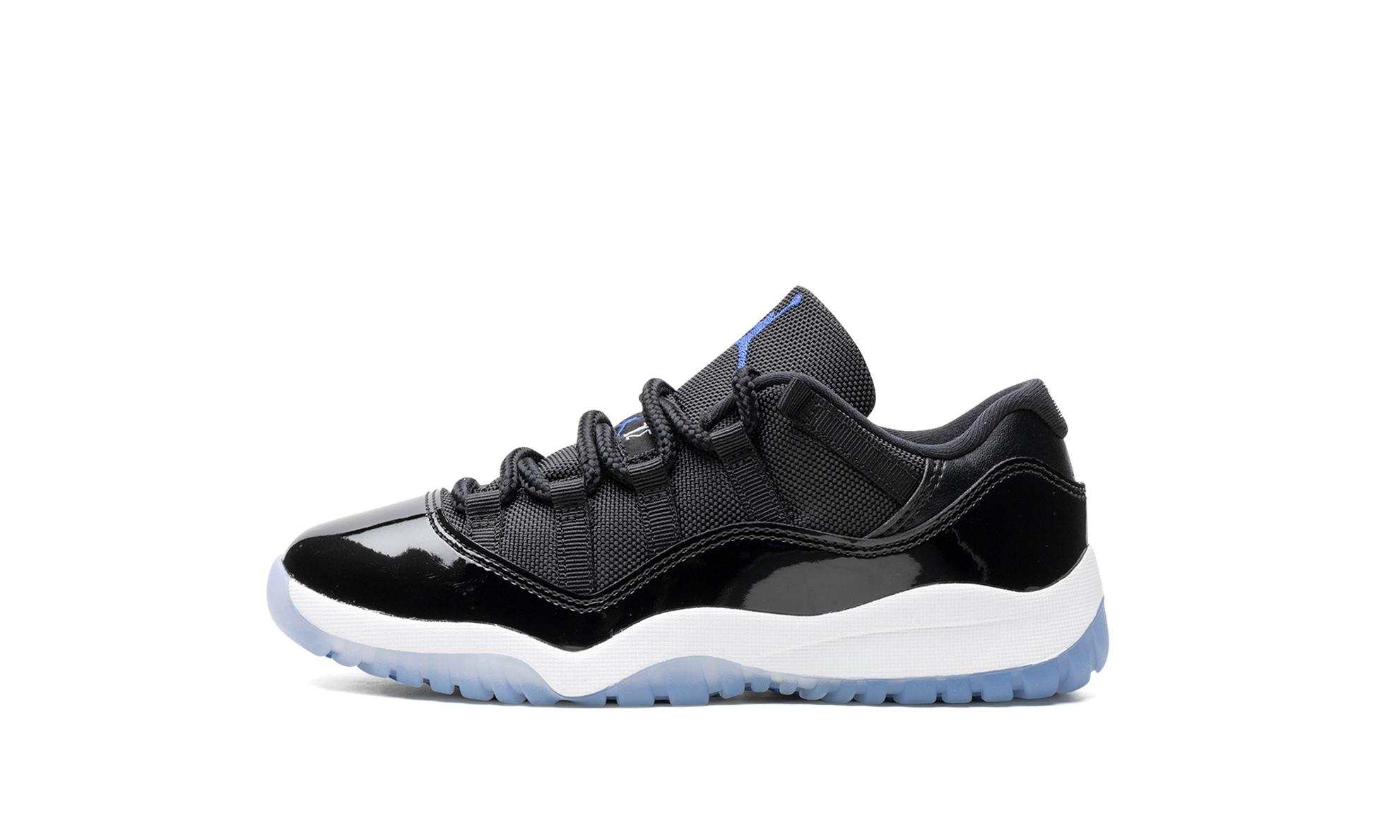 The Air Jordan 11 Low PS "Space Jam" is the preschool sizing of the colorway of the retro basketball sneaker that originally appeared on the model's high-top shoe beginning in 2000. The Jordan 11 Low “Space Jamâ€?marks the first time the iconic style has appeared on Michael Jordan's eleventh signature shoe in low-top form. Just like the original style. the Jordan 11 Low features a black ballistic mesh construction and shiny black patent leather mudguard. “Jordan Jumpmanâ€?detailing is seen on the black mesh tongue. A small Jumpman is seen in white on the heel. Underfoot. the white foam midsole and icy translucent blue rubber outsole complete the look.