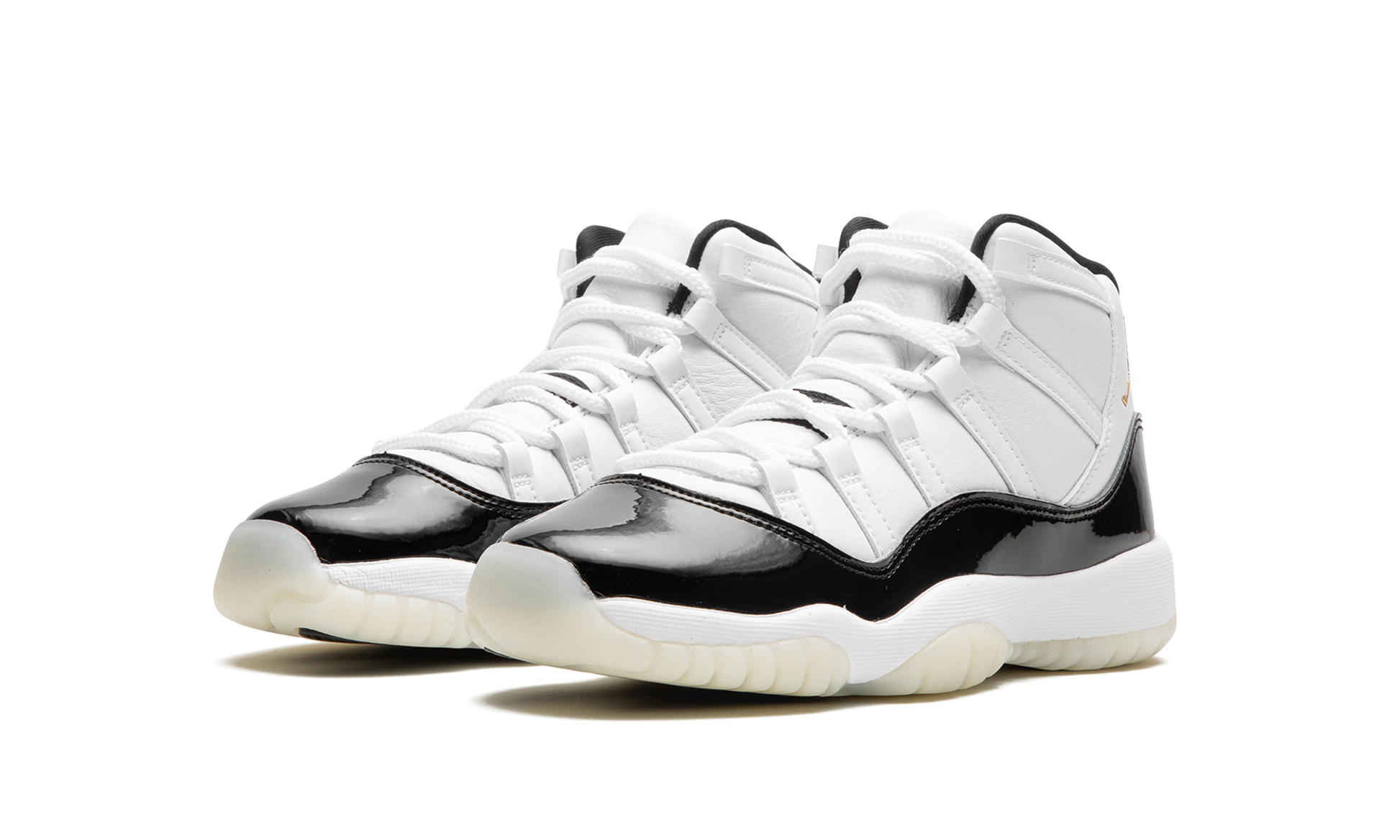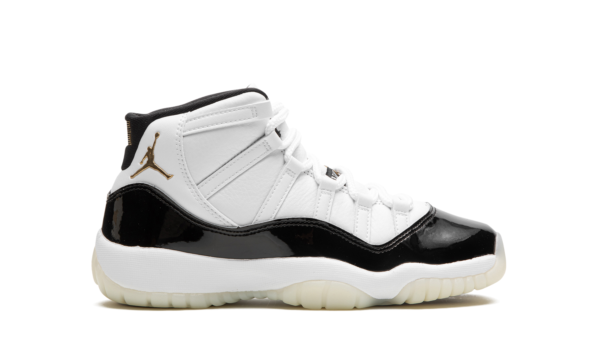 The Air Jordan 11 GS “Gratitudeâ€?is the youth sizing of the modern re-release of the colorway of Michael Jordan's eleventh signature shoe that was originally part of the “Defining Moments Packâ€?from 2006. Also nicknamed the “Defining Moments Packâ€?or simply “DMPâ€?colorway. the Jordan 11 “Gratitudeâ€?is based on the retro basketball sneaker's original “Concordâ€?colorway that was worn by Jordan with the Chicago Bulls throughout the team's historic run during the 1995-96 NBA season. The upper features a white leather construction. instead of the original DMP colorway's ballistic mesh build. A glossy black patent leather mudguard contrasts the shoe's neutral base. Metallic Gold Jumpman branding is found on the collar while “Jumpmanâ€?detailing appears across the white mesh tongue. Underfoot. the white foam midsole and translucent rubber outsole complete the look. Release date: December 9. 2023