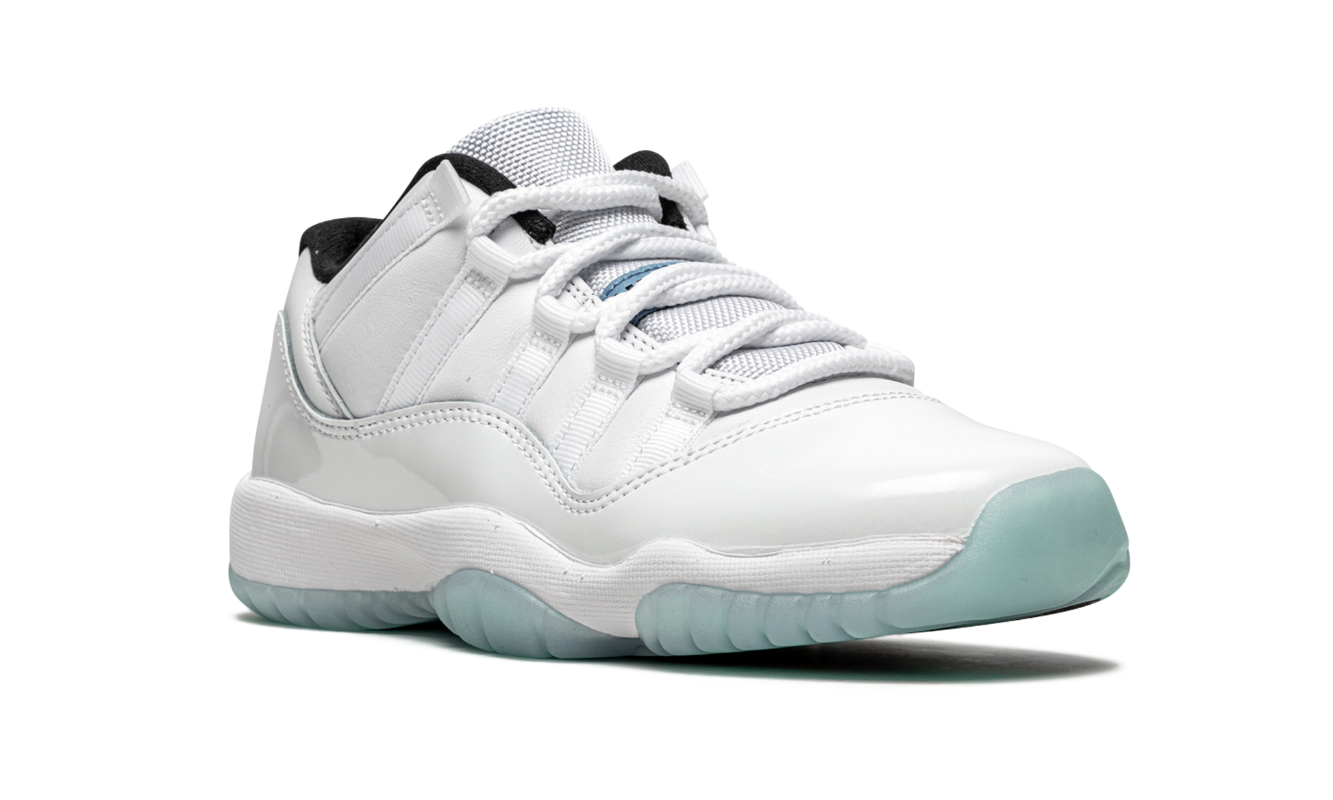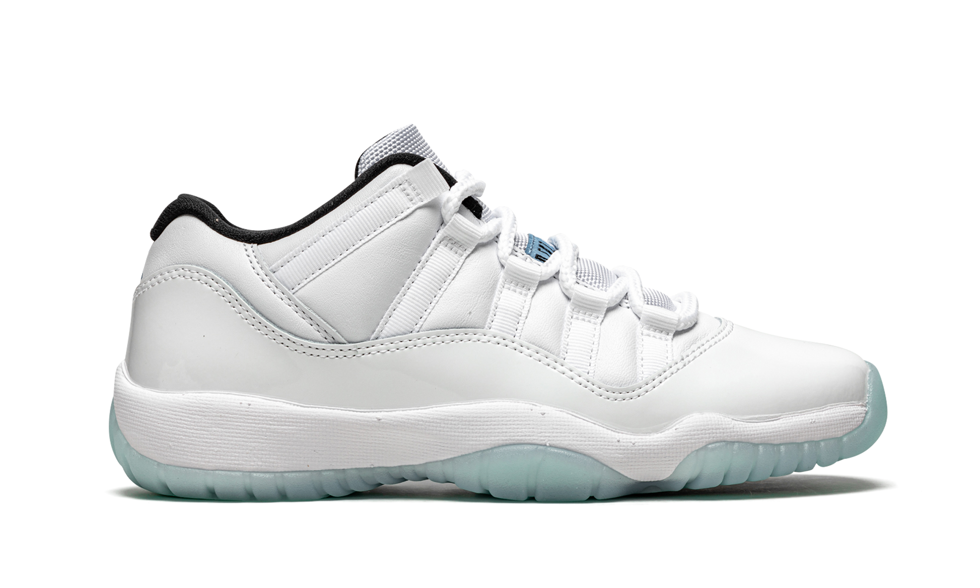 The Air Jordan 11 Low GS “Legend Blueâ€?is the youth sizing of Michael Jordan's eleventh signature shoe in a retro inspired colorway. Based on the “Columbiaâ€?Jordan 11 that was released by Nike in 1996. this white and Carolina blue colorway was renamed “Legend Blueâ€?in 2014—the last time the original mid-top version was re-released. The designs of both the original “Columbiaâ€?and “Legend Blueâ€?themes reference the popular “UNCâ€?colorway. though without any official naming by Jordan Brand. The Spring 2020 version of the “Legend Blueâ€?features a white leather upper and a white patent leather mudguard. “Jumpman Jordanâ€?branding appears on the white mesh tongue. A black liner contrasts the look of the white-based upper. An icy blue semi-translucent outsole compliments the white midsole. Release date: April 24. 2021.
