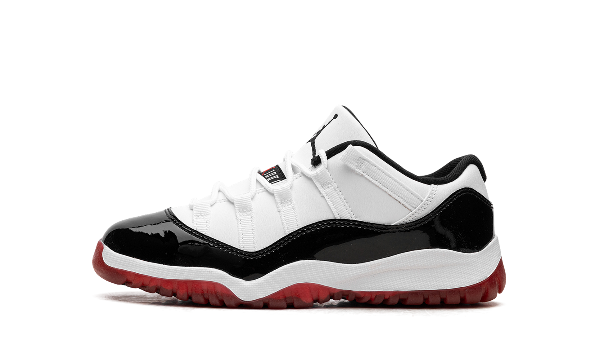 The Air Jordan 11 Low PS “Concord Bredâ€?is the preschool sizing of the low-top silhouette that graciously combines two legendary colorways. Both the “Concordâ€?and “Bredâ€?designs were worn by Michael Jordan during the 1995-1996 NBA season in which Jordan played a hand in helping the Chicago Bulls achieve a then-record 72 regular season wins. Now. the two easy to wear looks appear side-by-side on this Jordan 11 Low. The upper displays a white leather construction on the mid-panel and collar. The white upper and black patent leather mudguard is reminiscent of the “Concordâ€?look. A contrasting white midsole and semi-translucent University Red outsole combines with the aforementioned black patent leather and white midsole to mirror the Jordan 11 “Bredâ€?colorway.