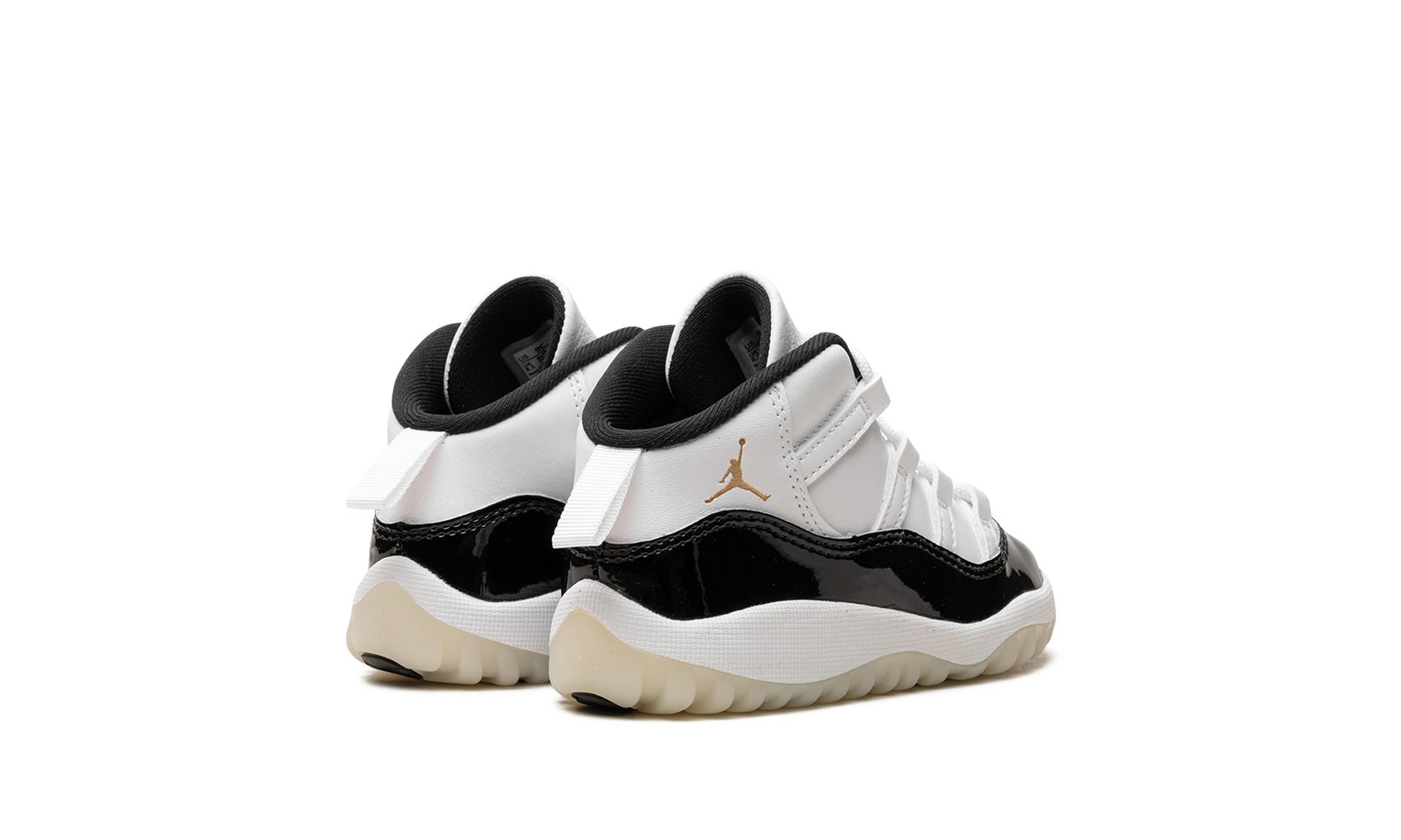 The Air Jordan 11 TD “Gratitudeâ€?is the toddler sizing of the 2023 re-release of the colorway of Michael Jordan's eleventh signature shoe that was formerly part of the “Defining Moments Packâ€?from 2006. The upper features a white leather construction. instead of the original DMP colorway's ballistic mesh. A glossy black patent leather mudguard contrasts the shoe's white base. Metallic Gold Jumpman branding is found on the collar while “Jumpmanâ€?detailing appears across the white mesh tongue. Underfoot. the white foam midsole and semi-translucent white rubber outsole complete the look. Release date: December 9. 2023