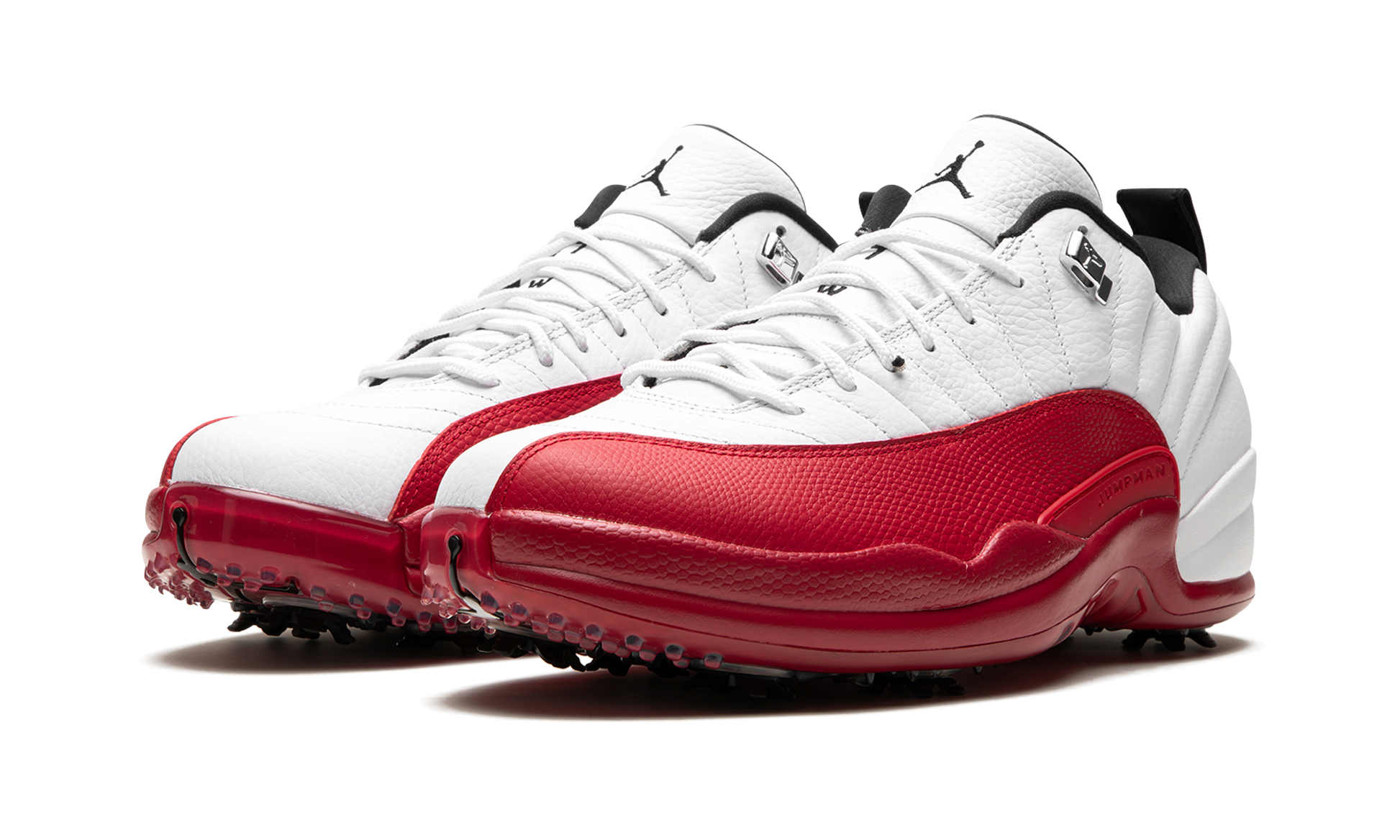 The Air Jordan 12 Golf “Cherryâ€?is a modified version of Michael Jordan's twelfth signature shoe designed for the golf course. On the “Cherryâ€?colorway. Jordan Brand references an original Jordan 12 style that was worn by Jordan with the Chicago Bulls in the late 1990s. Just like the OG “Cherryâ€?Jordan 12. the Jordan 12 Golf of the same nickname features a white leather upper with a Varsity Red textured mudguard. Metallic Silver eyelets complement the black Jumpman and black “Two 3â€?branding on the white leather tongue. Underfoot. a cleated outsole provides traction on the fairway. Release date: December 13. 2022