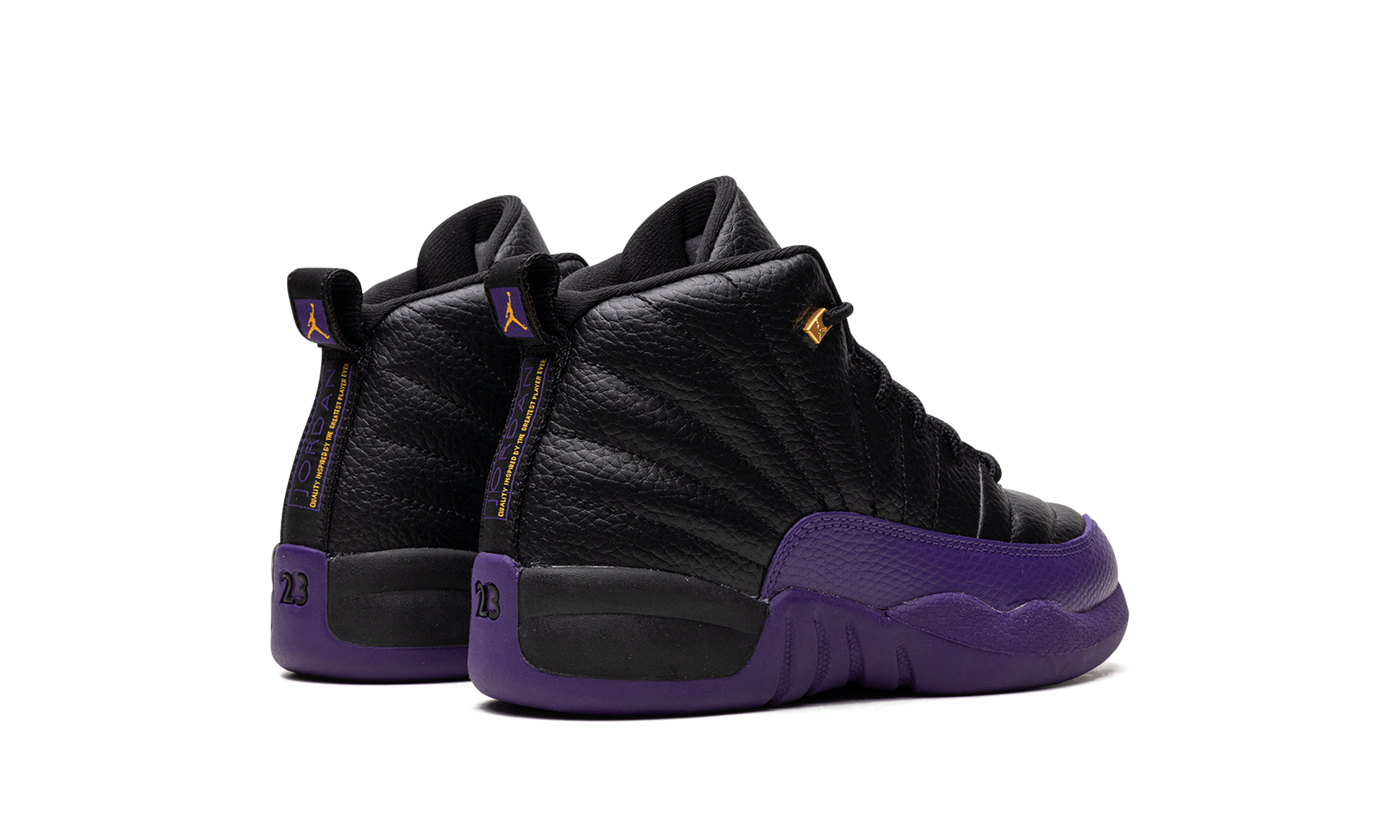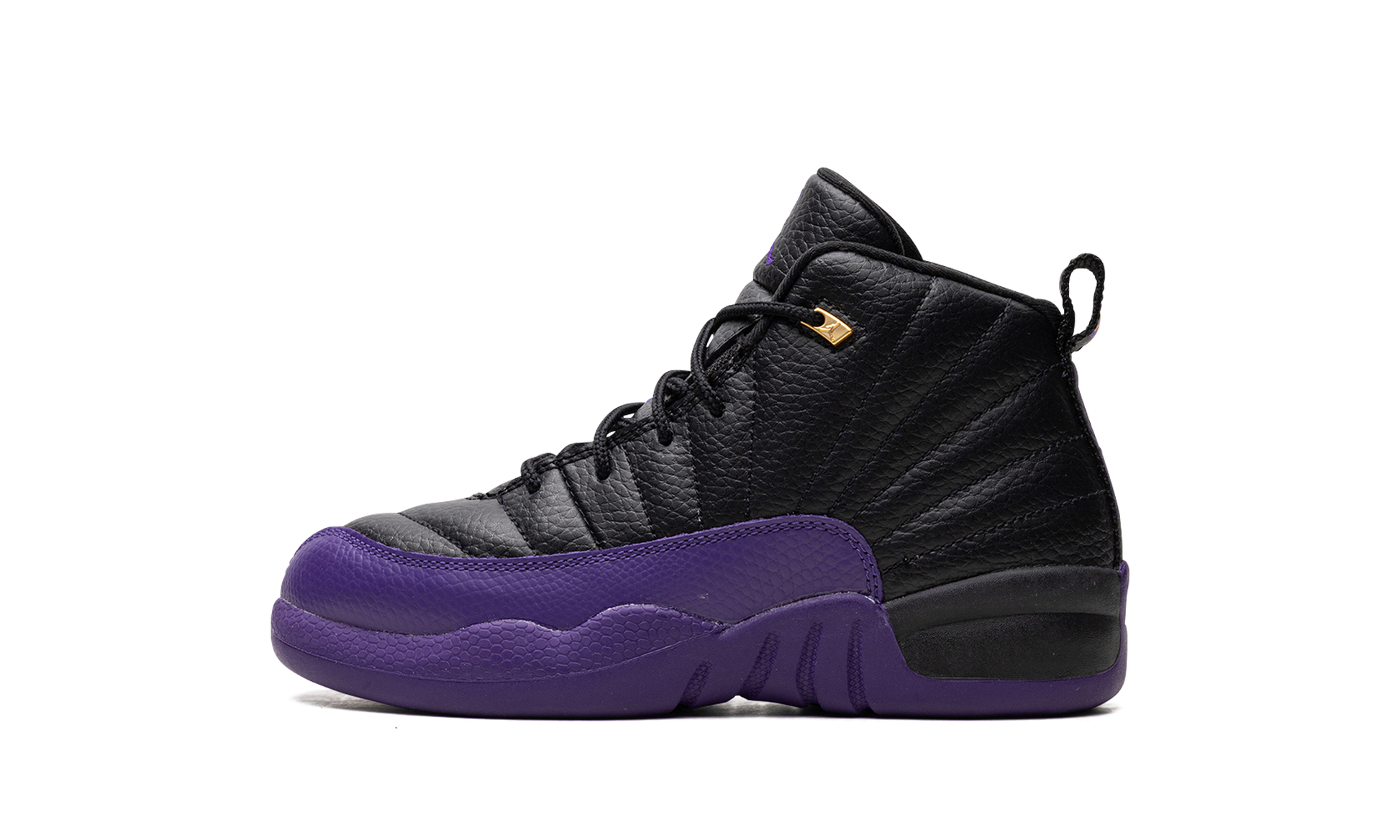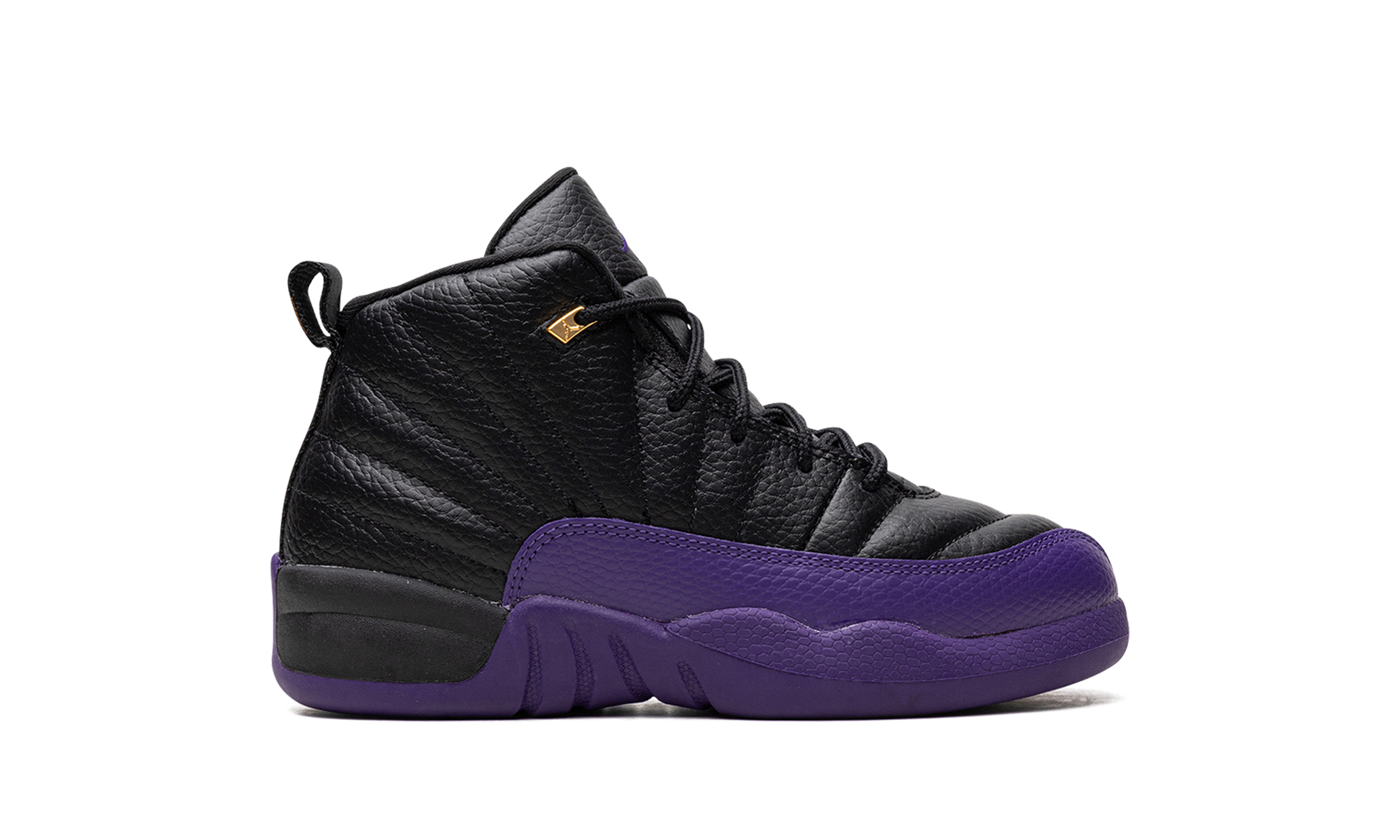 The Air Jordan 12 PS “Field Purpleâ€?is the preschool sizing of the retro basketball shoe in a colorway seemingly inspired by the Player Exclusive version of the Jordan 12 worn by former Sacramento Kings guard Mike Bibby. Reminiscent of the Jordan 12 Low that Bibby wore frequently with the Kings in the early 2000s. the “Field Purpleâ€?features a black leather upper with a purple textured leather mudguard. Metallic Gold eyelets give the shoe a premium look. Classic Jumpman branding appears on the lateral side of the midsole and purple Jumpman and “Two 3â€?detailing are embroidered on the black leather tongue. The shoe is mounted on a purple sole. Release date: July 29. 2023