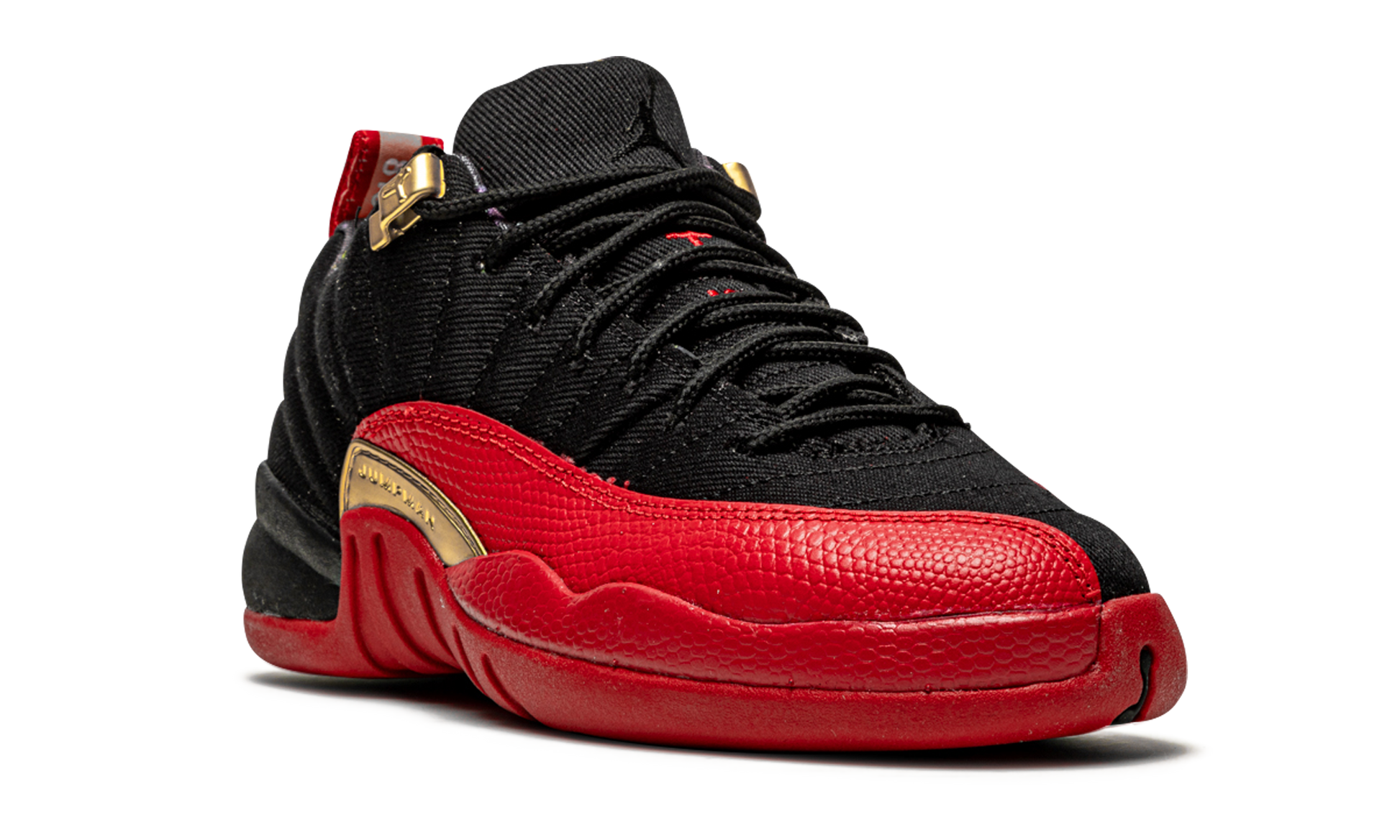 The Air Jordan 12 Low GS “Super Bowl LVâ€?is the youth sizing of Michael Jordan's twelfth signature shoe in a colorway dedicated to the NFL's ultimate game. Released by Jordan Brand in February 2021 prior to Super Bowl LV (55). this low-top Jordan 12 features various football references in its design. beginning with the Vince Lombardi Trophy inspired gold accenting on the mid-panel and confetti-style pattern on the liner. The rest of the design is reminiscent of the iconic “Flu Gameâ€?colorway worn by Michael during the '97 NBA Finals. A Varsity Red textured leather overlay appears on the forefoot and a black canvas material forms the base of the shoe. Black Jumpman embroidery can be found above the red “Two 3â€?branding on the middle of the tongue. While the aforementioned designs tie in with the team uniform colors of the Chicago Bulls. the “ribbonâ€?style design on the heel is a reference to the old team uniform colors of the Tampa Bay Buccaneers. one of the two teams in Super Bowl LV. and the host city of the event. as well. Release date: February 6. 2021.