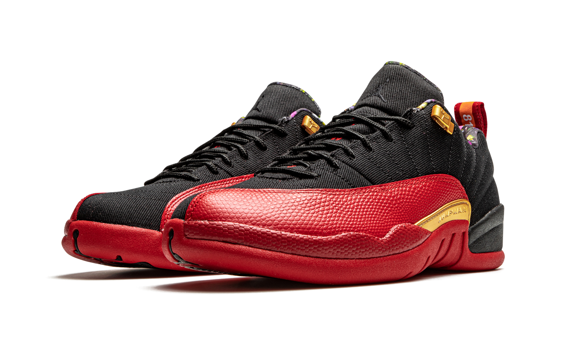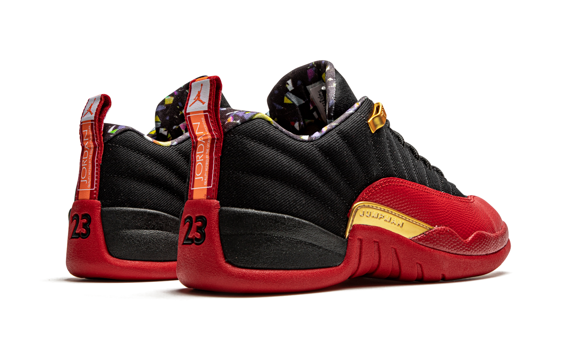 The Air Jordan 12 Low “Super Bowl LVâ€?is a special edition colorway of Michael Jordan's twelfth signature shoe in a colorway dedicated to the biggest sporting event of the year. Released by Jordan Brand in February 2021 ahead of Super Bowl LV (55). which was held in Tampa. Florida. this low-top Jordan 12 displays several football references in its design. beginning with the Vince Lombardi Trophy inspired gold accenting on the mid-panel and confetti-style pattern on the liner. The rest of the look draws favorably from the iconic “Flu Gameâ€?colorway worn by Michael during the '97 NBA Finals. A Varsity Red textured leather overlay appears on the forefoot and a black canvas material forms the base of the shoe. Tonal Jumpman embroidery can be found above the red “Two 3â€?detailing on the middle of the tongue. The colors used on the “ribbonâ€?style design on the heel reference the old team uniform colors of the Tampa Bay Buccaneers. Gold eyelets and a red and black midsole finish off the look. Release date: February 6. 2021.