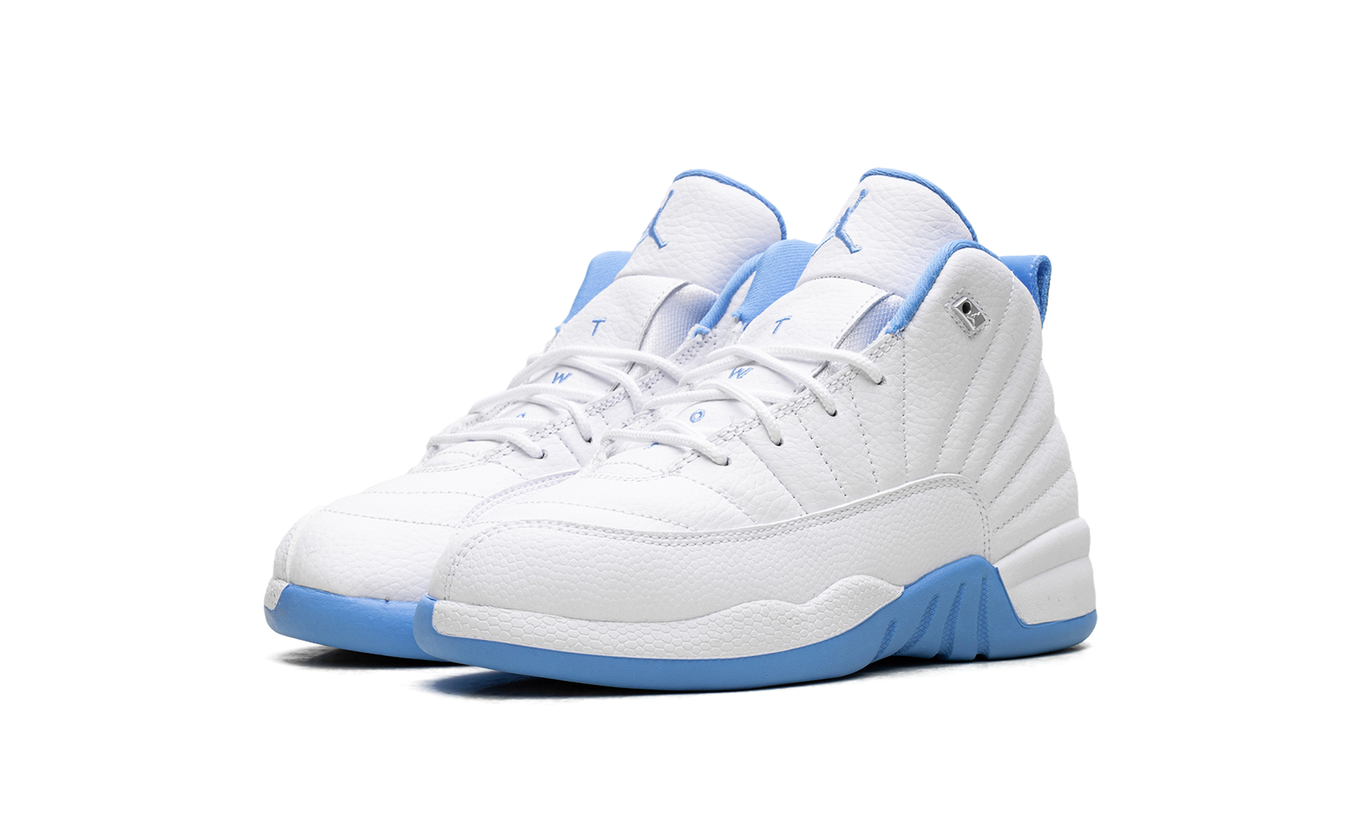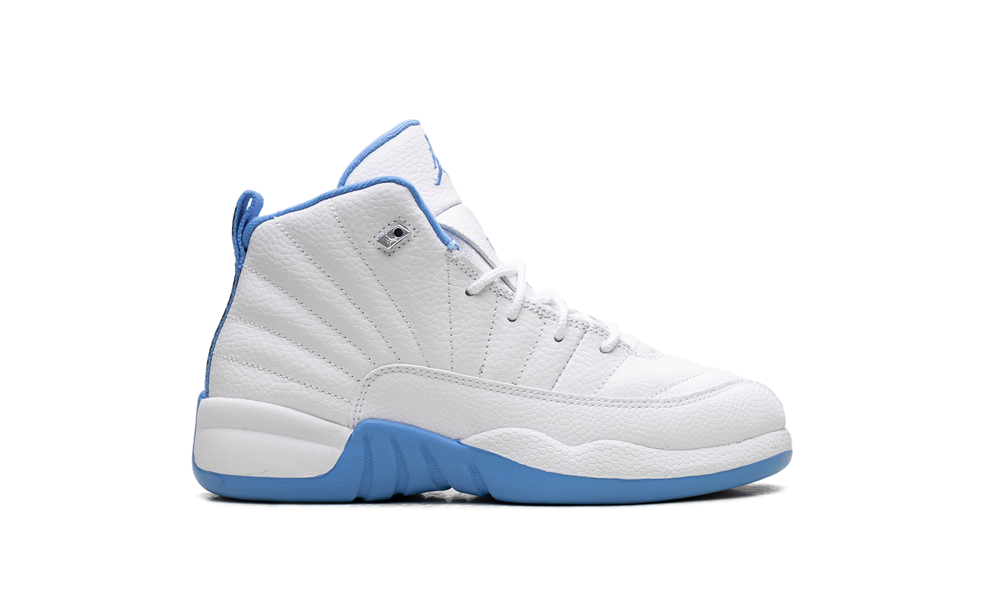 A timeless hoops icon for the youngest fans returns with the Air Jordan 12 Retro PS 'Melo' sneaker! This Preschool edition revives the clean white and University Blue colorway. originally worn by Carmelo Anthony during his rookie year. It features a premium tumbled leather upper with signature radiating stitch lines and a lizard-textured mudguard. With a comfortable foam midsole for lightweight cushioning. this shoe is the perfect way to give your little one a piece of Jordan heritage and Denver Nuggets team colors.