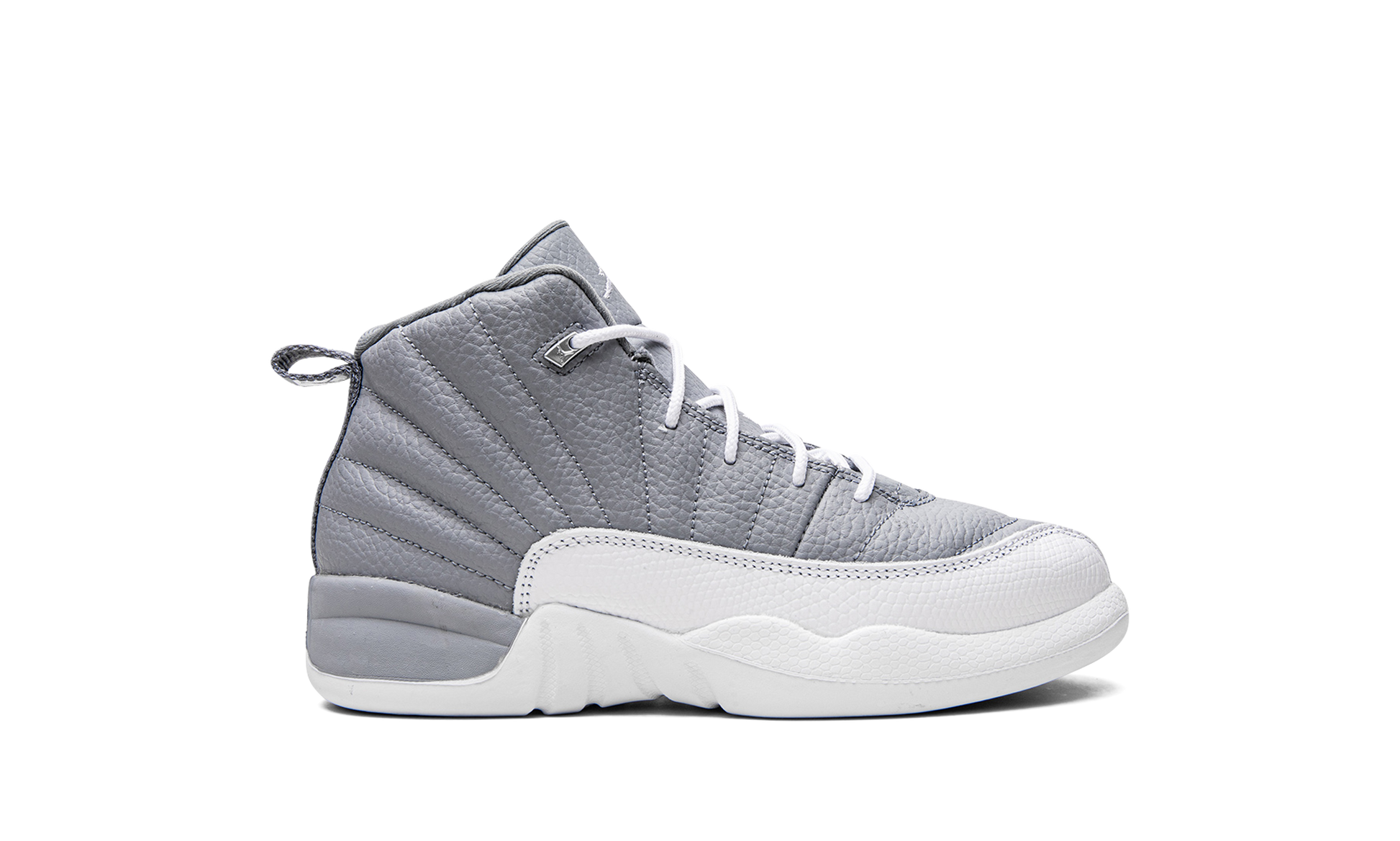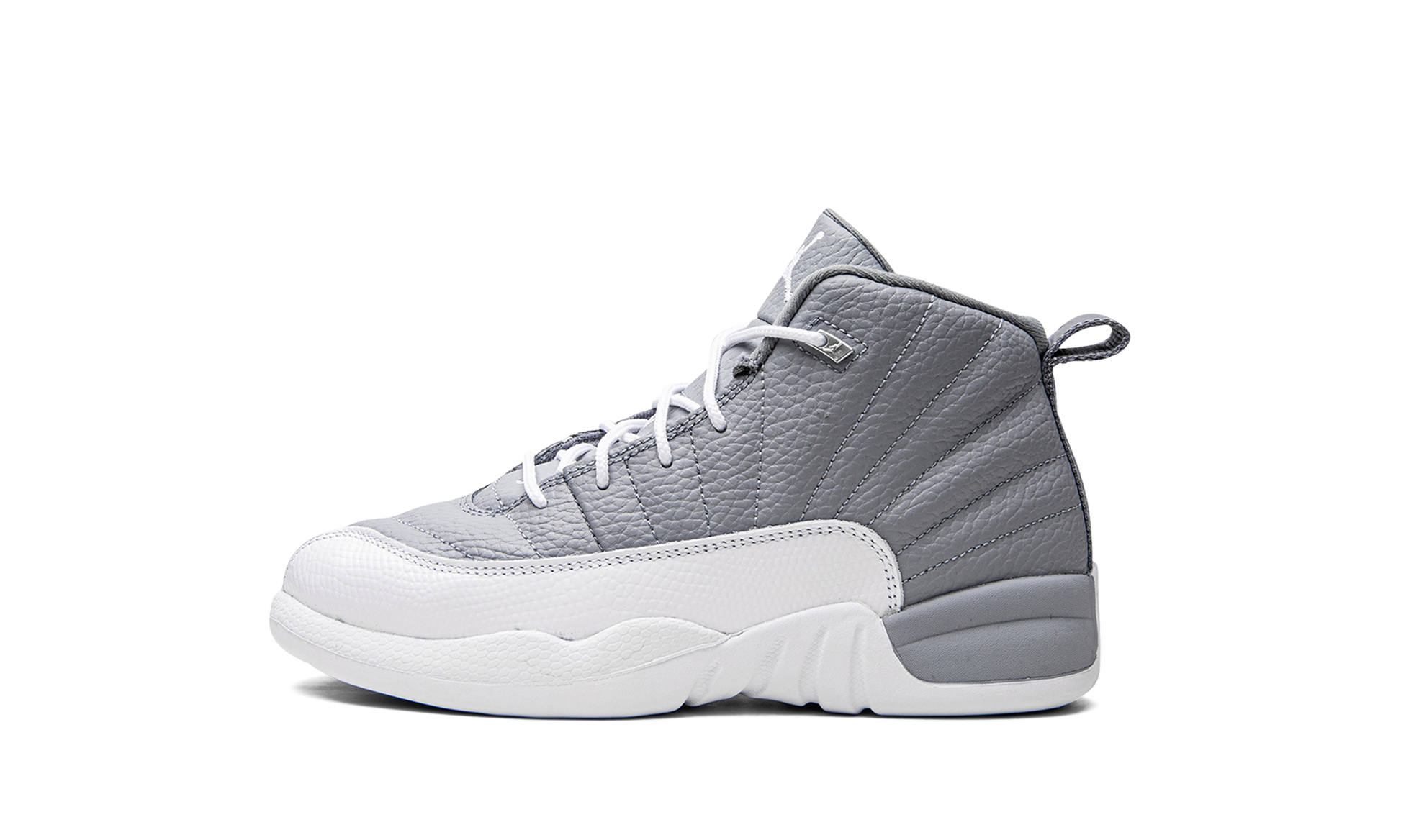 The Air Jordan 12 PS “Stealthâ€?is the preschool sizing of the retro basketball shoe in a two-tone grey and white colorway. Originally released in 1997. the Jordan 12 was worn by Michael Jordan with the Chicago Bulls during the '96-97 NBA season. and in the '97 NBA Playoffs. The “Stealthâ€?honors the shoe's 25th anniversary. Details include a Stealth Grey tumbled leather upper paired with a white pebbled mudguard. Metallic Silver eyelets appear on the collar. and a grey nylon pull tab is found on the heel. Release date: August 27. 2022