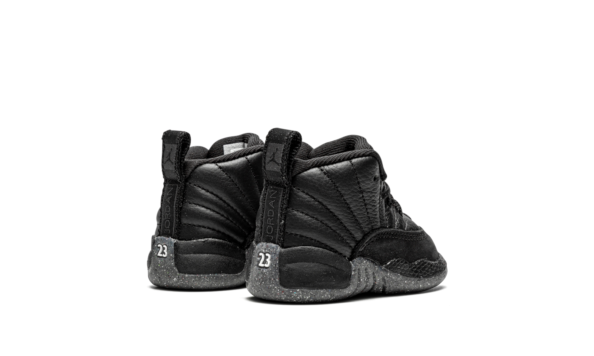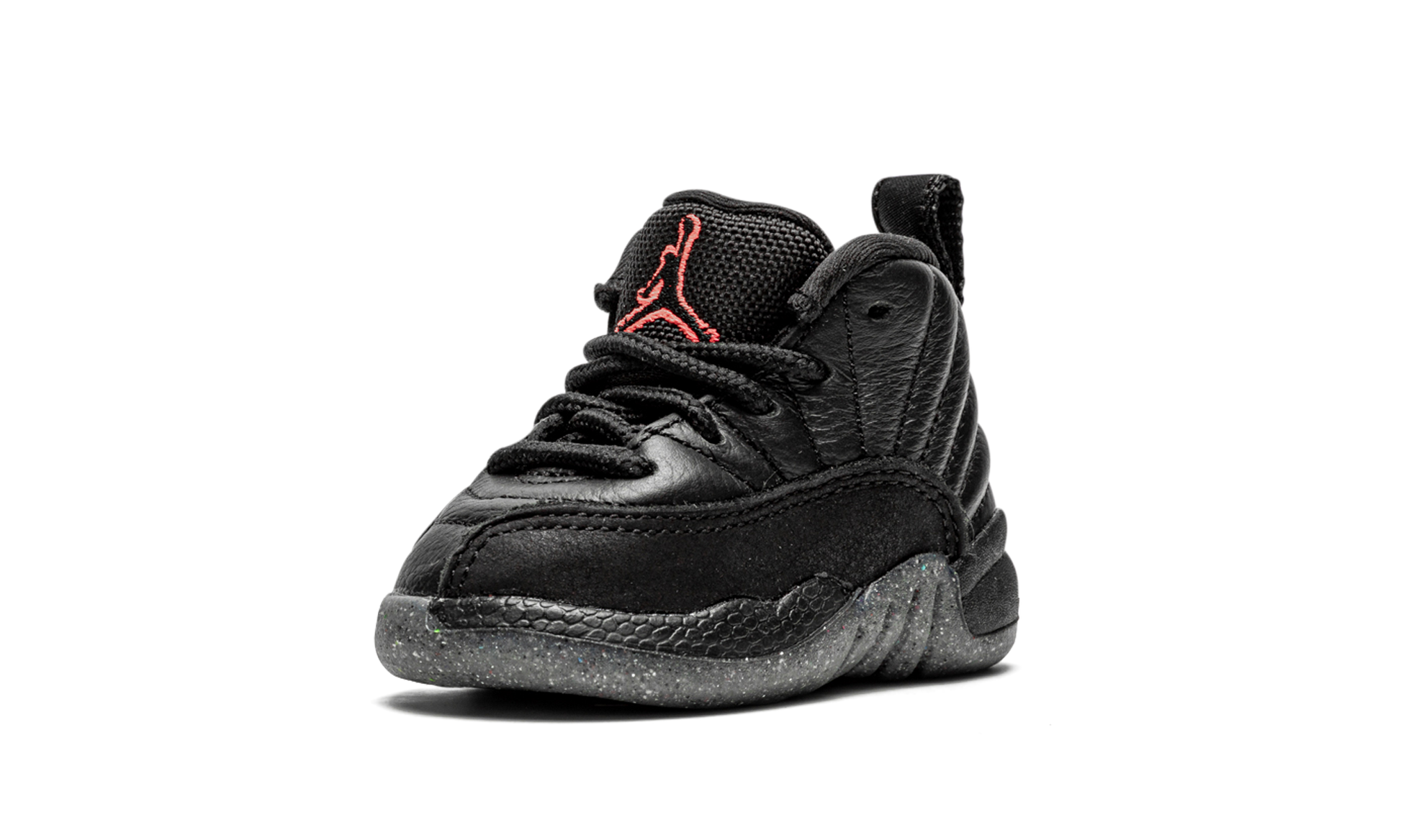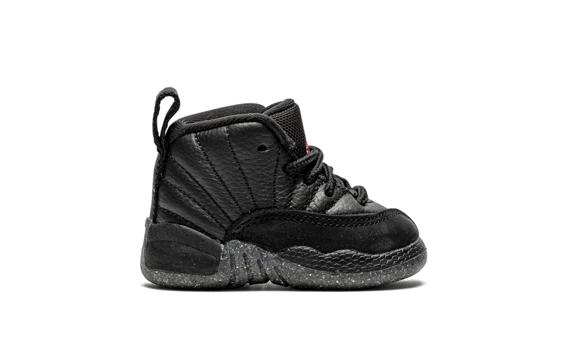 The Jordan 12 TD “Utilityâ€?is the toddler sizing of Michael Jordan's twelfth signature shoe in a colorway that features Nike's sustainable “Grindâ€?material in its sole. The “Utilityâ€?represents one of the latest design advancements of the vintage basketball shoe that once introduced Nike's Zoom Air cushioning technology into the Air Jordan line in 1997. A black tumbled leather upper is paired with a black synthetic nubuck mudguard. Red piping borders the “Jumpmanâ€?branding on the lateral side. The tongue appears in a rugged ballistic mesh textile. Other details include a black midsole with a faux lizard skin finish and an outsole constructed from Nike's “Grindâ€?composition. which contains up to 3% recycled materials. Release date: August 21. 2021