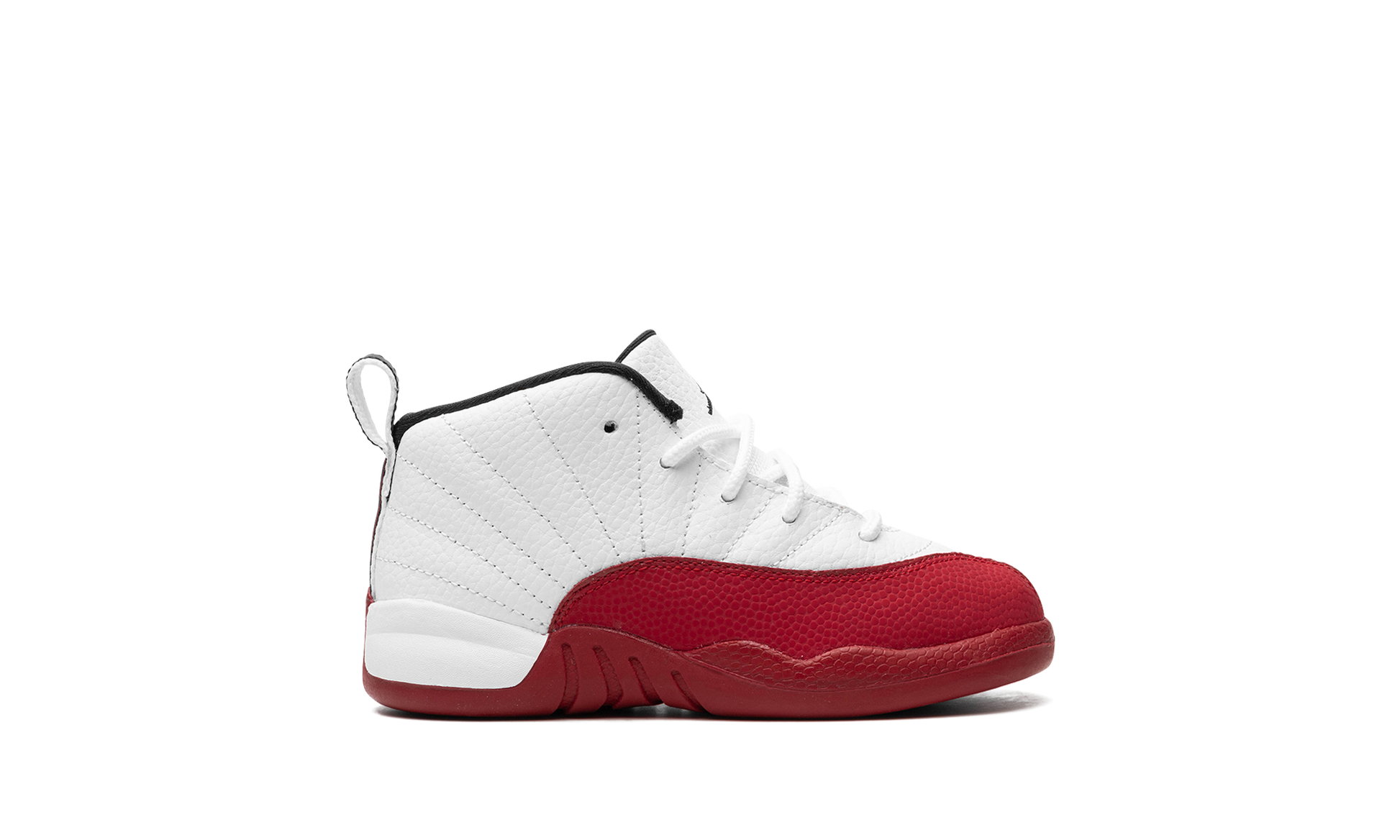 The Air Jordan 12 TD “Cherryâ€?is the toddler sizing of the original colorway of Michael Jordan's twelfth signature shoe that debuted in 1997. Worn by Jordan with the Chicago Bulls throughout the NBA's 1996-97 regular season. the Jordan 12 “Cherryâ€?is one of the most popular and iconic Jordan models of all time. The 2023 version of the shoe remains faithful to the original style from '97. It features a white leather construction with a Varsity Red textured mudguard/toe panel that transitions into the midsole. Silver eyelets and black Jumpman and “Two 3â€?detailing are found on the collar and tongue. respectively. Release date: October 28. 2023