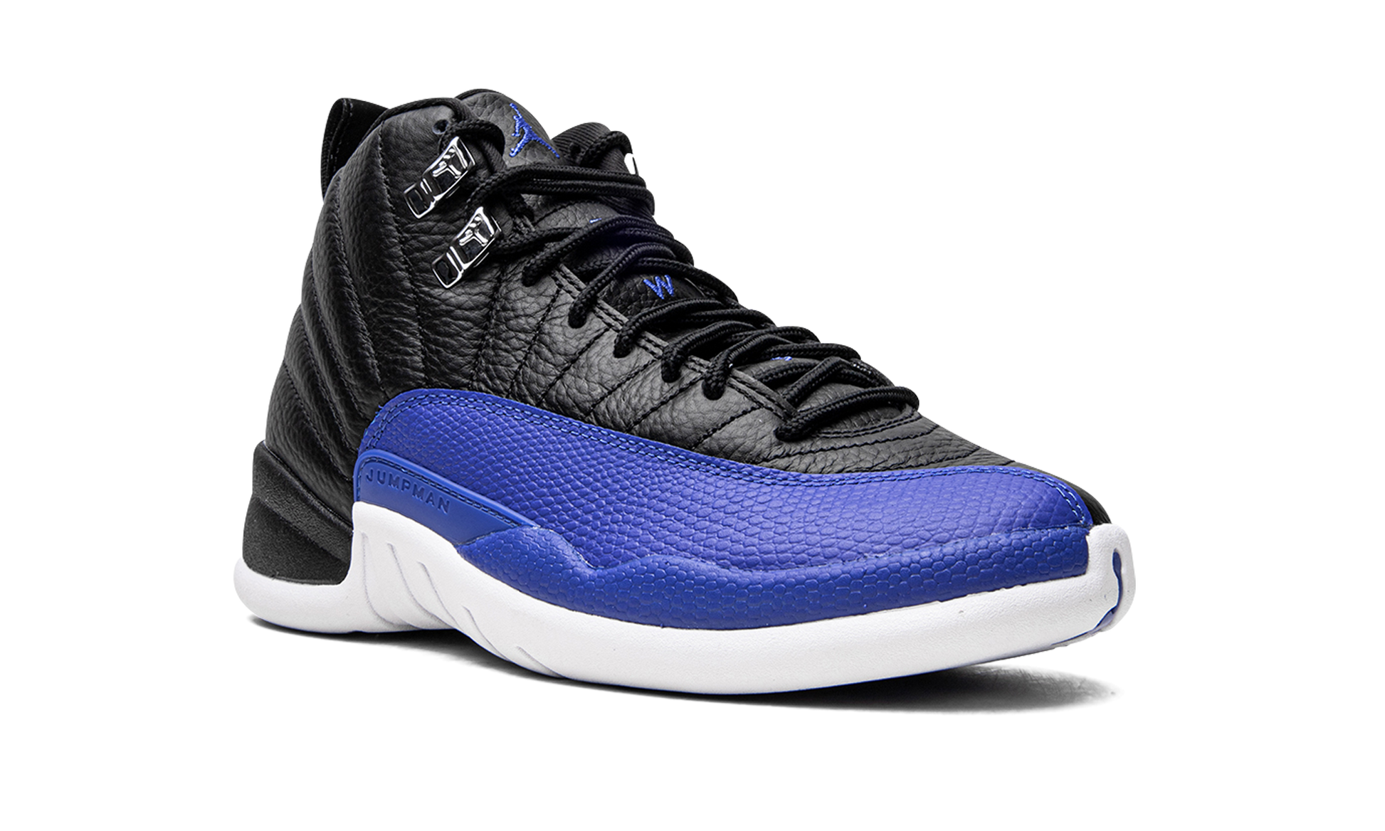 The Women's Air Jordan 12 “Hyper Royalâ€?is a women's-exclusive colorway of the retro basketball shoe that was released in October 2022. The “Hyper Royalâ€?draws loose inspiration from the Jordan 12 “Flu Gameâ€?and “Playoffsâ€?as it features a black tumbled leather upper with a contrasting mudguard. On the “Hyper Royal.â€?the model's signature basketball-textured mudguard appears in royal blue. Additional Hyper Royal accenting includes a royal Jumpman logo and “Two 3â€?branding on the tongue. â€?3â€?detailing on the back of the midsole. and Jumpman and “Celebrating 25 Years of Jordan in Chinaâ€?insignia on the heel. Metallic Silver eyelets and blue Jumpman branding on the outsole complete the look. Release date: October 1. 2022