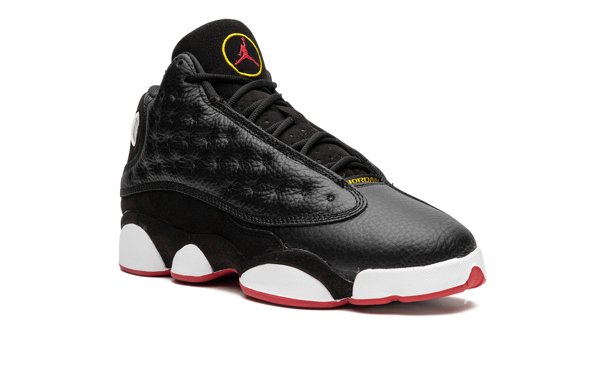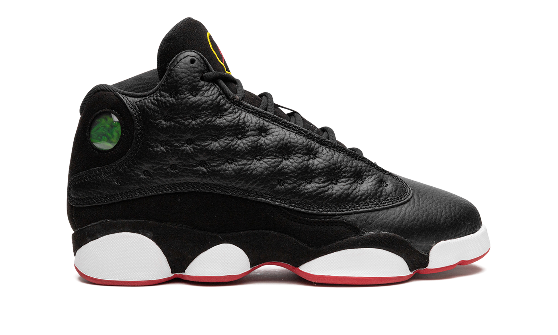 The Air Jordan 13 GS “Playoffs 2023" is the youth sizing of the popular. original colorway of Michael Jordan's thirteenth signature shoe. The Jordan 13 “Playoffsâ€?was debuted by Jordan during the 1998 NBA All-Star Game before it was eventually worn by “His Airnessâ€?during the Chicago Bulls' memorable run during the '98 NBA Playoffs. The 2023 version of the “Playoffsâ€?is a true remaster of the original version of the shoe that was released in '98. The colorway has a dotted black leather upper. a black leather toe. and black suede mudguard. A holographic. panther-eye-inspired emblem is found on the lateral side of the collar. Classic Jumpman branding appears in red within a yellow embroidered circle on the tongue. “Jordanâ€?detailing is found on the vamp. White midsole walls complete the look of this classic sneaker. Release date: February 18. 2023