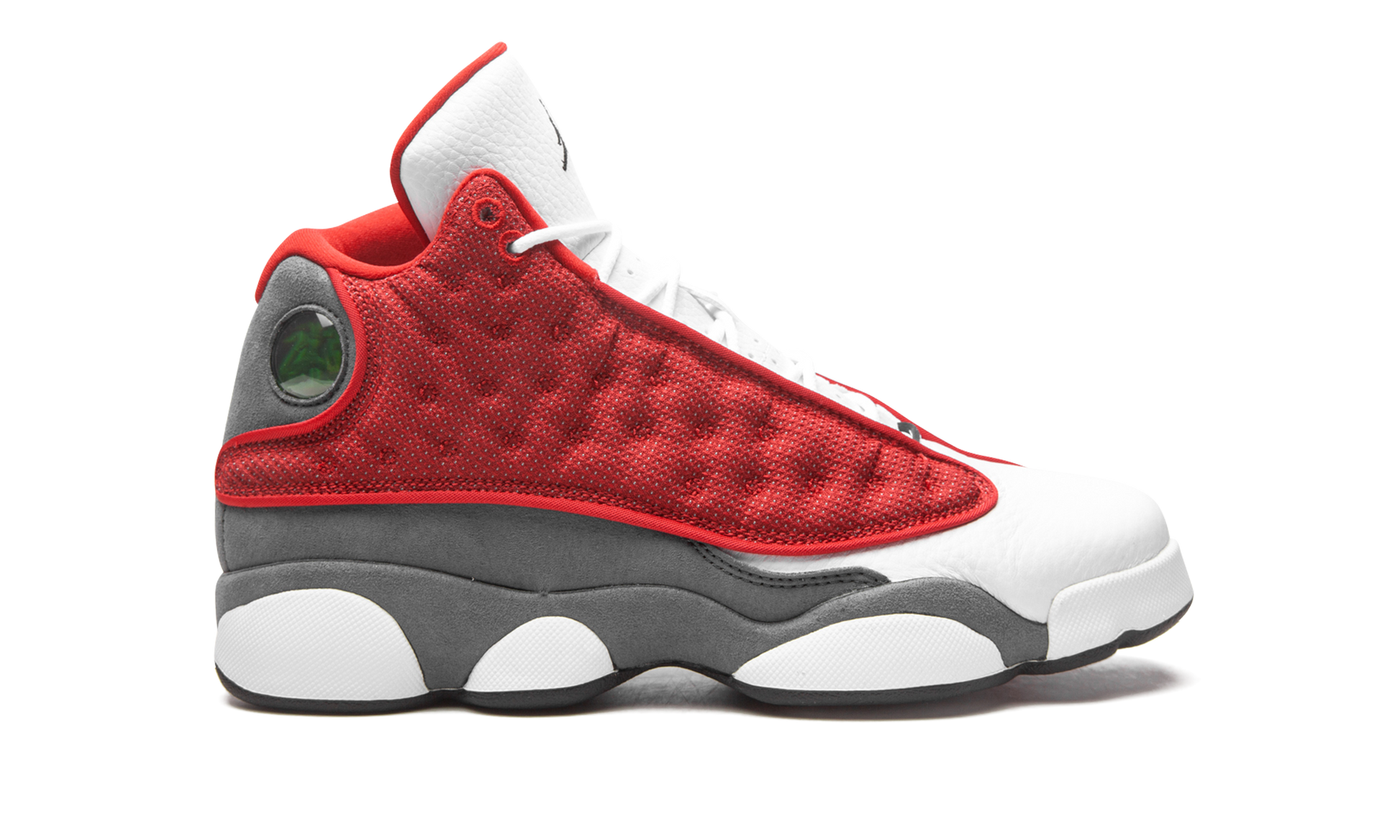 The Air Jordan 13 GS “Red Flintâ€?is the youth sizing of the updated. red-based edition of the “Flintâ€?colorway of Michael Jordan's thirteenth signature shoe. Cast in the same color block as the “Flint.â€?an original colorway of the retro basketball shoe that debuted in 1998. the “Red Flintâ€?substitutes the blue textile upper found on the first “Flintâ€?for a fiery Gym Red hue. The rest of the model is identical to the original “Flintâ€?with white tumbled leather on the toe and dotted leather on the tongue. A holographic emblem can be found on the collar and Flint Grey suede appears on the mudguard above the white midsole walls. A black Jumpman is embroidered on the tongue and “Jordanâ€?text can be found on the black nylon tag on the throat. Release date: May 1. 2021.