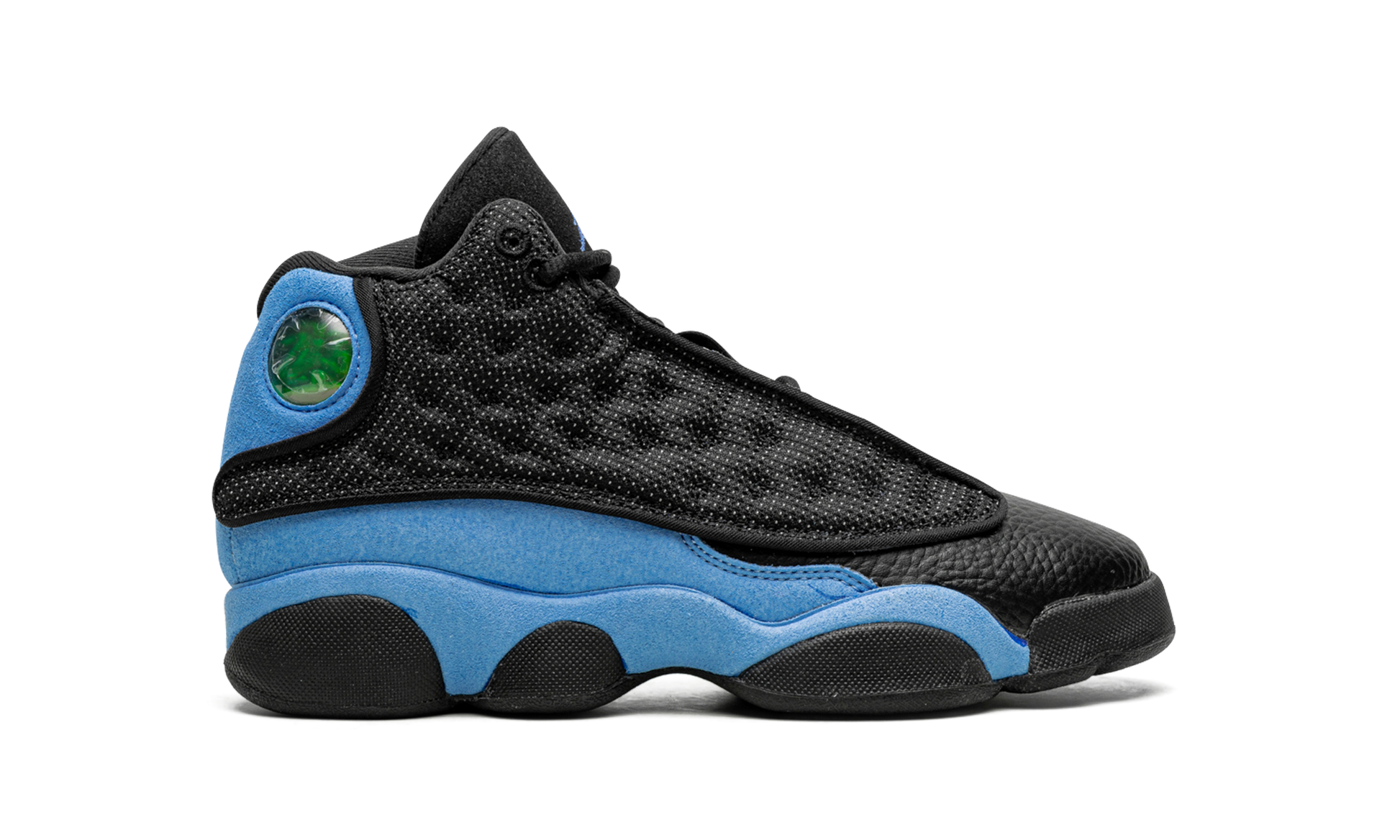 The Air Jordan 13 GS “University Blueâ€?is the grade school youth sizing of the colorway of Michael Jordan's former signature shoe that is inspired by his alma mater. the University of North Carolina. The Jordan 13's “University Blueâ€?colorway shows love for the UNC Tar Heels by incorporating its signature light blue hue onto its design. The shoe features a dot-embroidered black mesh upper that's contrasted with University Blue suede overlays. The Jordan 13's signature holographic panther eye emblem appears on the lateral side of the shoe. A University Blue Jumpman is embroidered on the black leather tongue. Black midsole walls complete the look. Release date: December 23. 2022