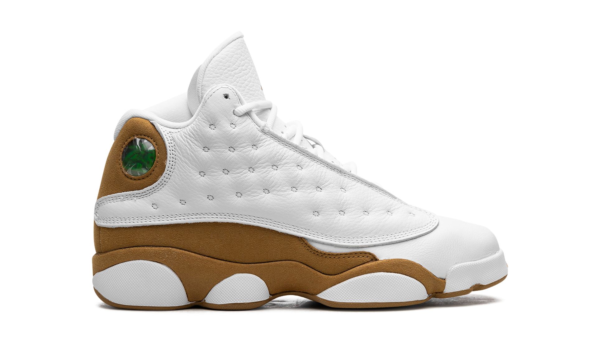 The Air Jordan 13 GS "Wheat" is the youth sizing of the 2023 re-release of the colorway of Michael Jordan's thirteenth signature basketball shoe that debuted in 2004. The “Wheatâ€?Jordan 13 was one of the retro sneaker's first “lifestyleâ€?colorways and certainly one of its most popular back in the day. Just like the original release. the 2023 version of the Jordan 13 “Wheatâ€?is complete with a white dotted leather upper with a white leather toe. A Wheat suede panel wraps the heel and midfoot. More Wheat accenting appears on the midsole walls and rubber outsole. The final hit of Wheat detailing is seen on the Jumpman on the tongue. A holographic emblem on the ankle completes the look. Release date: November 21. 2023