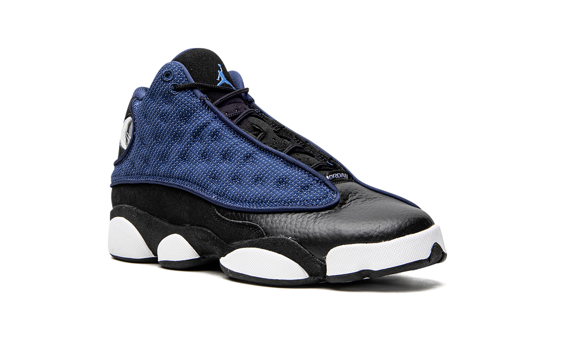 The Air Jordan 13 GS “Brave Blueâ€?is the youth sizing of the high-top version of an original colorway of Michael Jordan's thirteenth signature shoe from 1998. The Jordan 13 released in this same colorway in '98. but as a low-top. Jordan Brand re-issued the Jordan 13 Low “Brave Blueâ€?in 2017 before releasing this high-top iteration in full family sizing in April 2022. The modern “Brave Blueâ€?looks identical to the original low-top version. albeit in high-top form. It features a reflective Brave Blue mesh upper with a black synthetic nubuck mudguard. Black leather is found on the toe. A holographic emblem appears on the collar and a “Jordanâ€?tag is located on the vamp. Underfoot. white pods appear above a black rubber sole. Release date: April 29. 2022