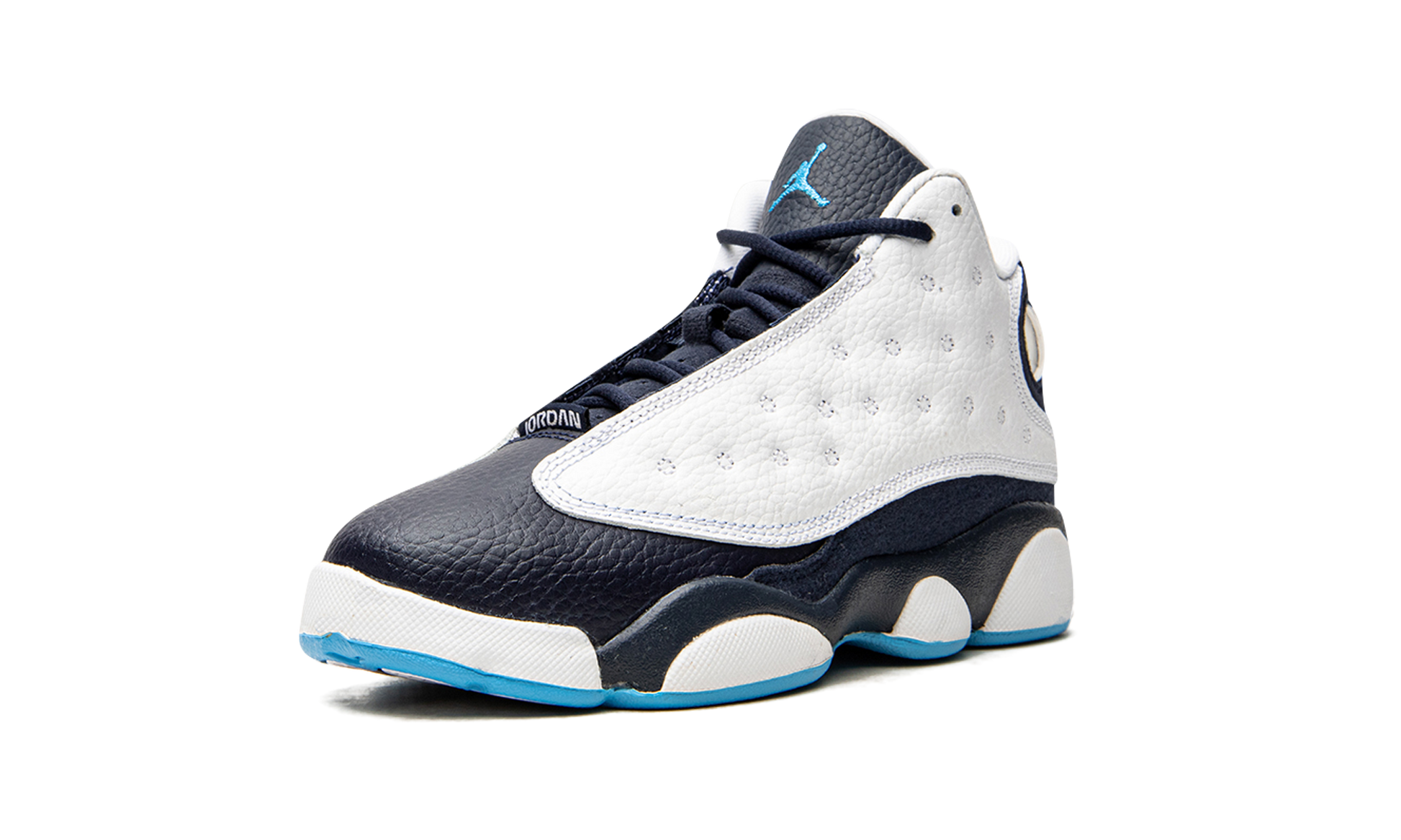 The Air Jordan 13 PS “Obsidianâ€?is the preschool sizing of Michael Jordan's thirteenth signature shoe in a colorway that is reminiscent of some of the shoe's original looks from 1997 and 1998. The “Obsidianâ€?looks to the Air Jordan 13's “He Got Gameâ€?and “Chicagoâ€?colorways for inspiration with its white tumbled leather upper and contrasting paneling. in this case. arranged in Obsidian (dark blue). The holographic emblem on the collar is a true-to-original design found on the original Air Jordan 13. A Powder Blue Jumpman is embroidered on the Obsidian tumbled leather tongue and white “Jordanâ€?text hits at the vamp. Finishing touches include white midsole walls and Powder Blue traction pods on the outsole. Release date: September 18. 2021