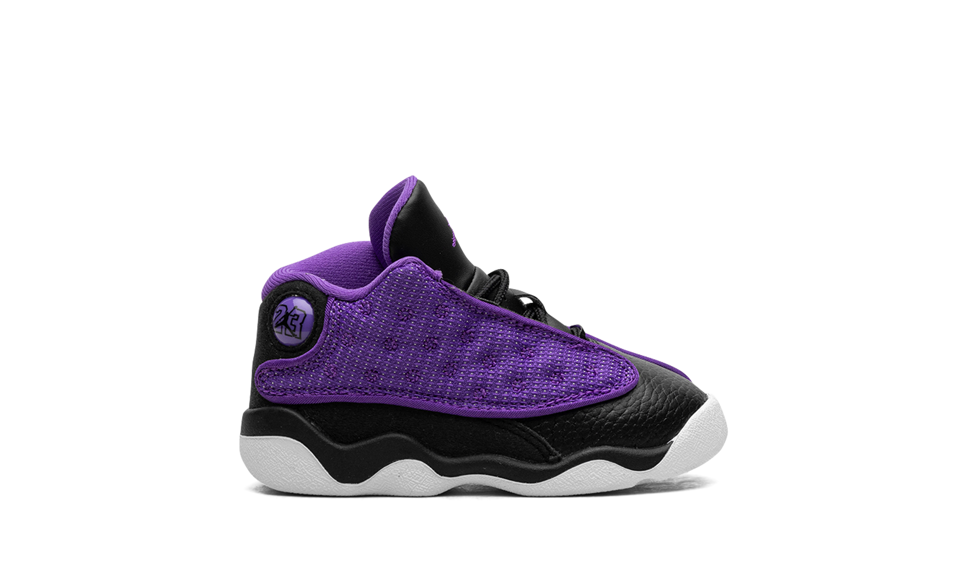 The Air Jordan 13 TD "Purple Venom" is the toddler sizing of Michael Jordan's thirteenth signature shoe with an eye-catching purple design. A kids-exclusive release. the Jordan 13 “Purple Venomâ€?features a black leather base with a Purple Venom-colored mesh upper. The Jordan 13's usual holographic panther eye emblem on the lateral side of the ankle is replaced with a solid purple â€?3â€?logo. A purple Jumpman is embroidered on the black leather tongue. Underfoot. white midsole walls complete the look. Release date: October 2. 2023