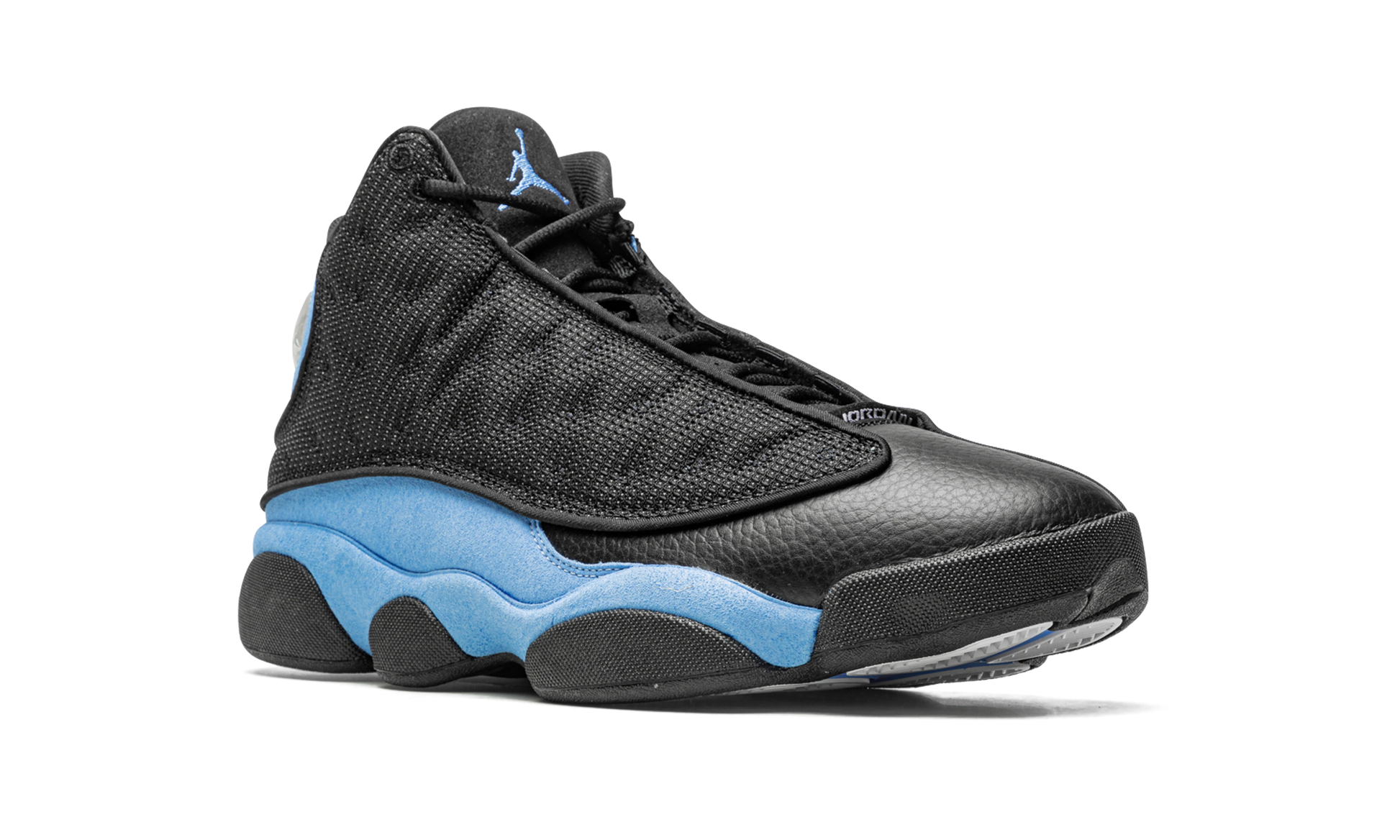 The Air Jordan 13 “University Blueâ€?is a colorway of Michael Jordan's former signature shoe that pays homage to his alma mater. the University of North Carolina. While in no way affiliated with North Carolina or its basketball team. the Jordan 13's “University Blueâ€?colorway nonetheless shows appreciation for the UNC Tar Heels by incorporating its signature light blue hue onto its design. The shoe features a dot-embroidered black mesh upper that's contrasted with University Blue suede overlays. The Jordan 13's signature holographic panther eye emblem appears on the lateral side of the shoe. A University Blue Jumpman is embroidered on the black leather tongue. Black midsole walls complete the look. Release date: December 23. 2022