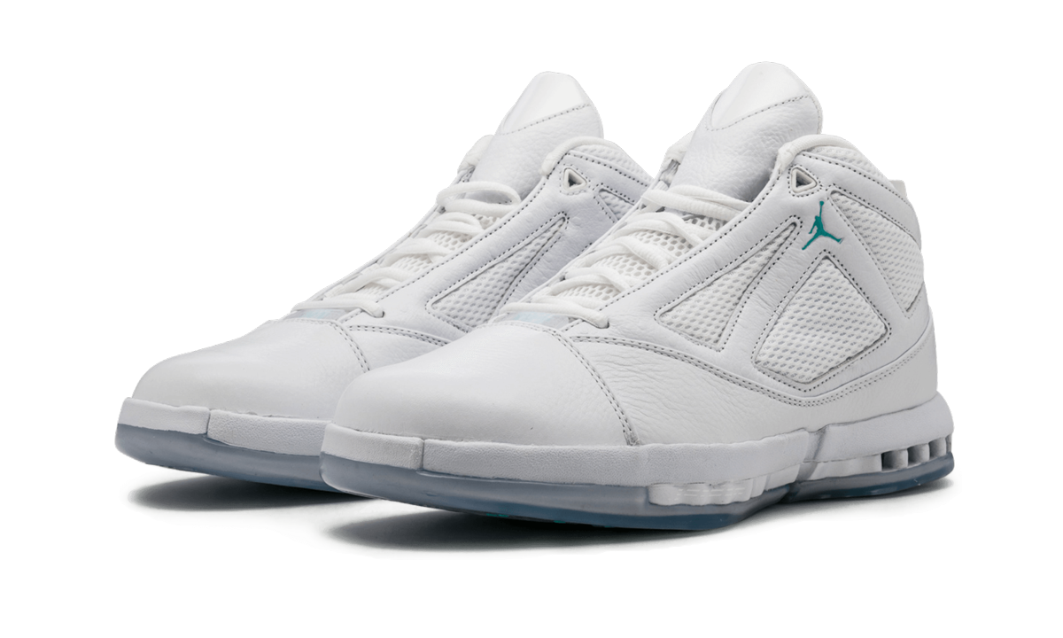 Boasting a "South Beach" theme. the Solefly x Air Jordan 16 Retro released in 2016. If features an completely white leather upper with ostrich leather on the removable shroud (which is reversible and can be worn on the Pink Flash side as well). Neon pink and turquoise accents complete the shoe.