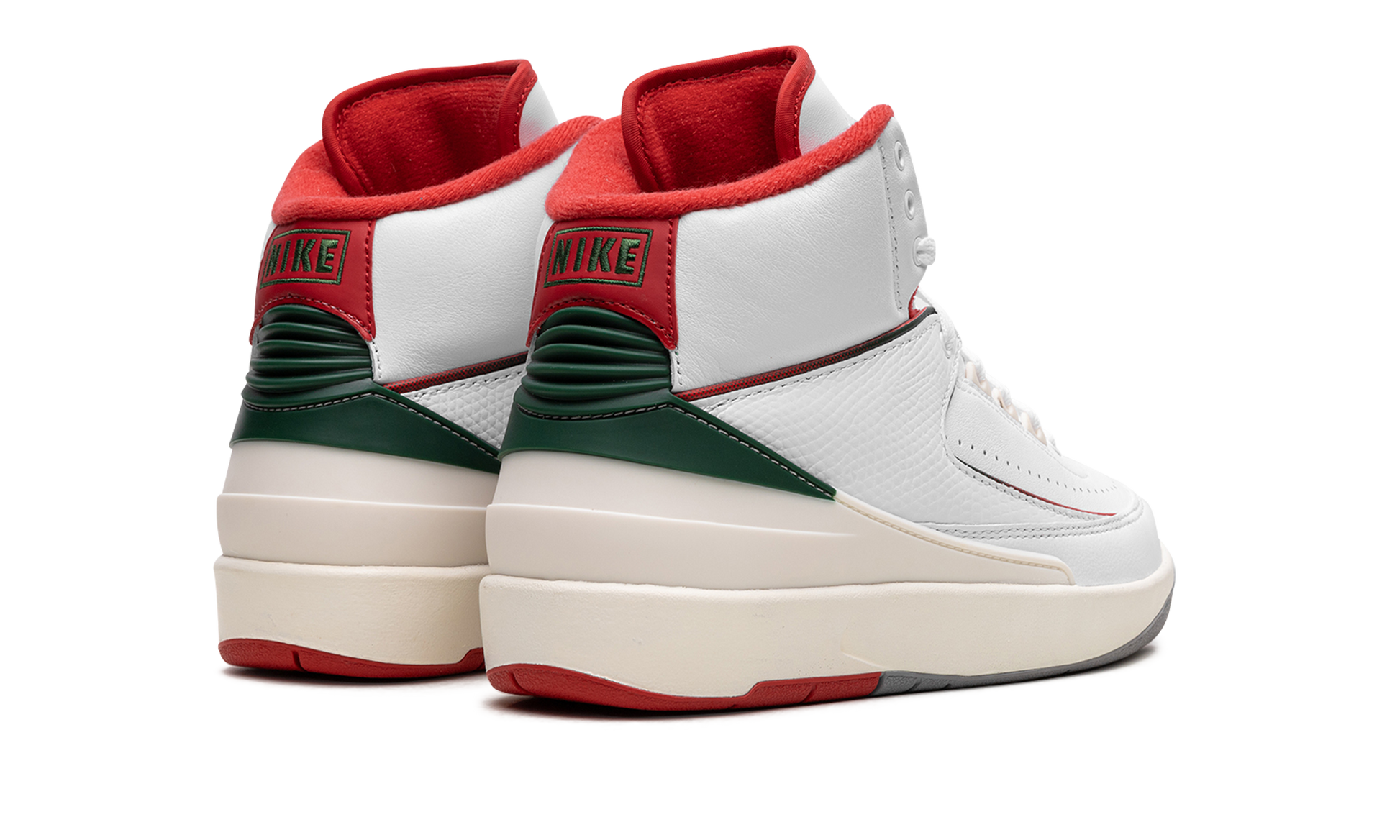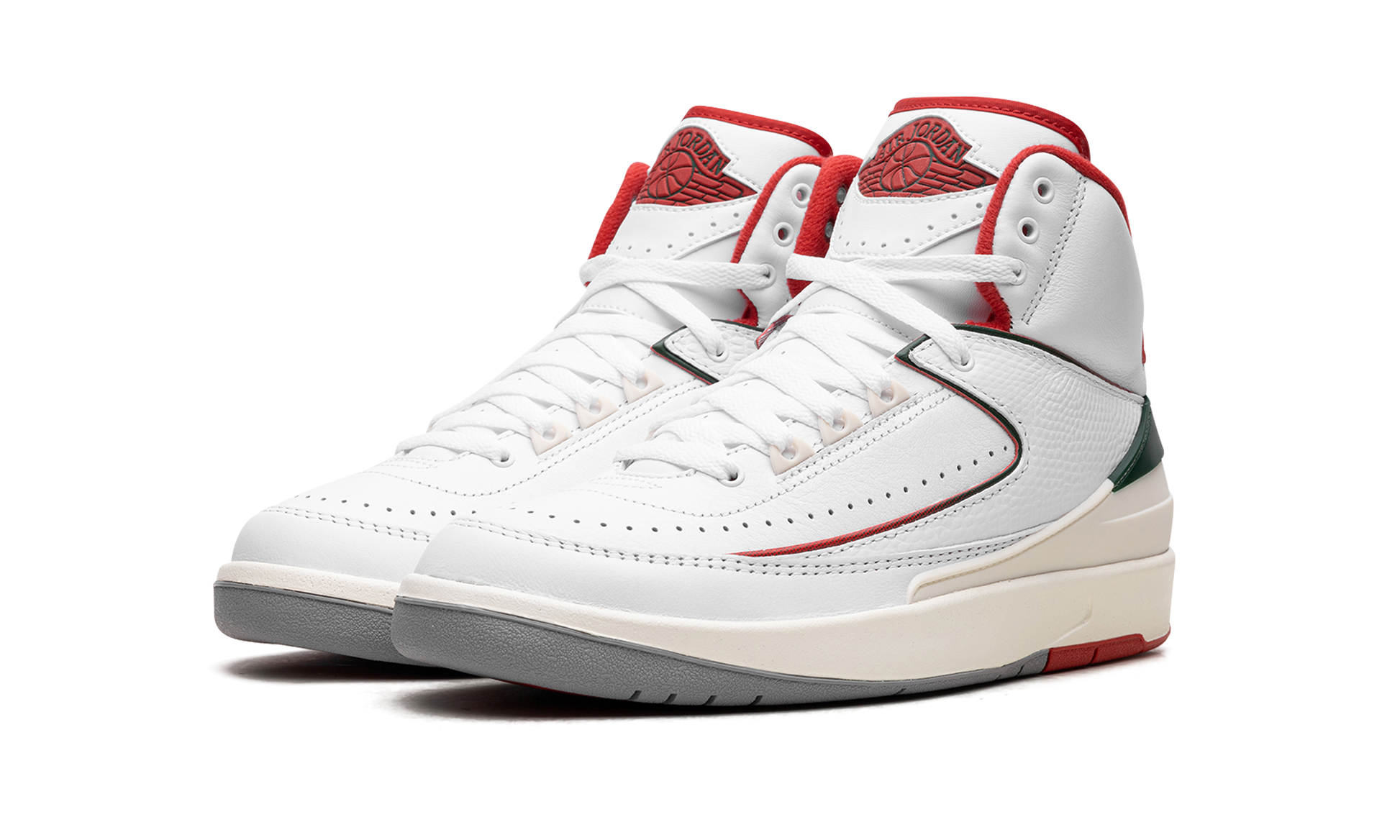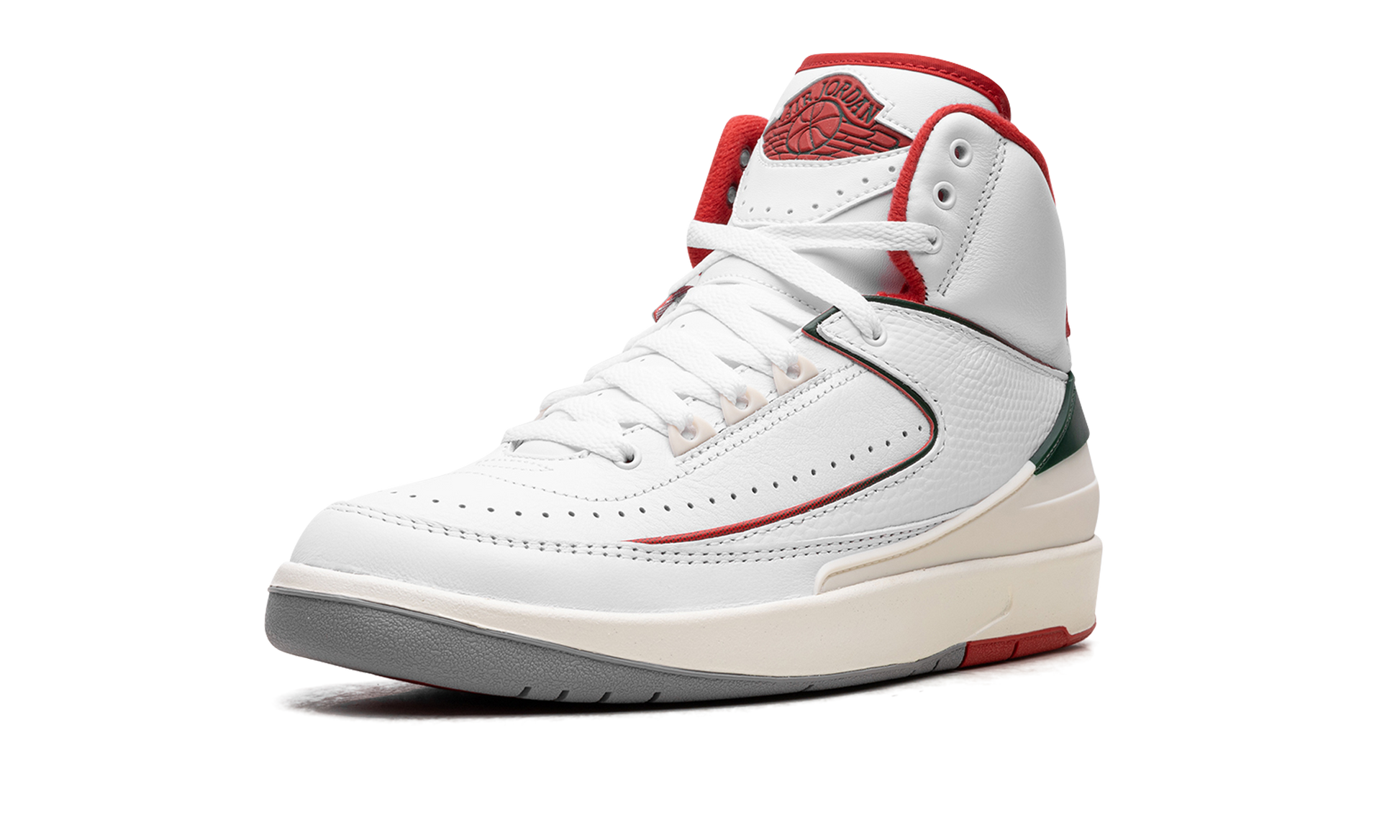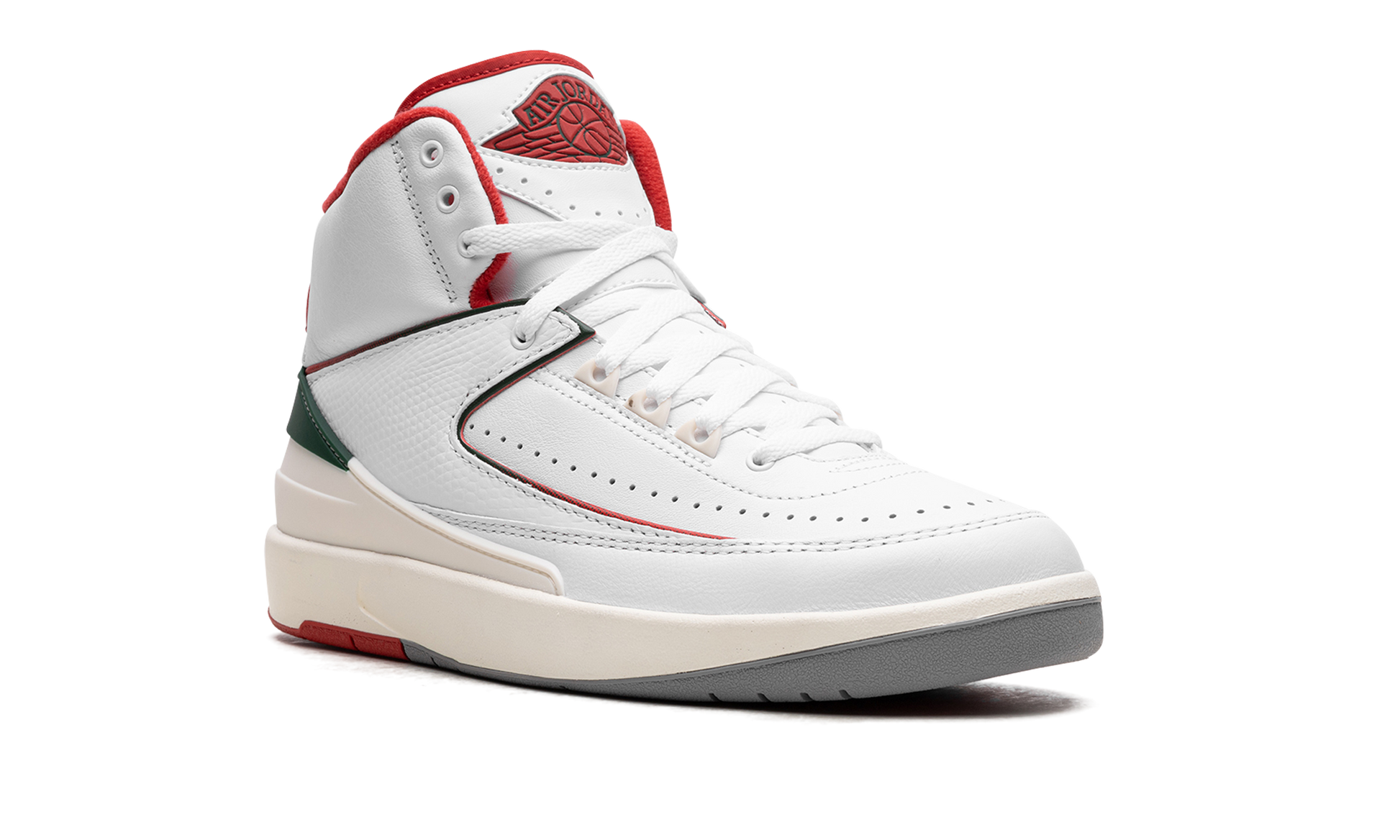 The Air Jordan 2 GS “Italyâ€?is the youth sizing of Michael Jordan's second signature shoe inspired by its Italian-made roots. The original Air Jordan 2 from 1987 was manufactured in Italy and is considered to be the first “Luxuryâ€?basketball sneaker. The “Italyâ€?AKA “Originsâ€?Air Jordan 2 is similar to the design of the model's original “White/Redâ€?colorway. but with added green detailing to represent the colors of the Italian flag. Specifically. the upper is designed with a white leather construction with tonal textured leather overlays. Contrasting Fire Red detailing lines the overlays. heel counter. and interior lining. The piping that runs across the upper transitions from red to green. and the heel piece and “Nikeâ€?branding on the heel also appear in green. Release date: November 18. 2023