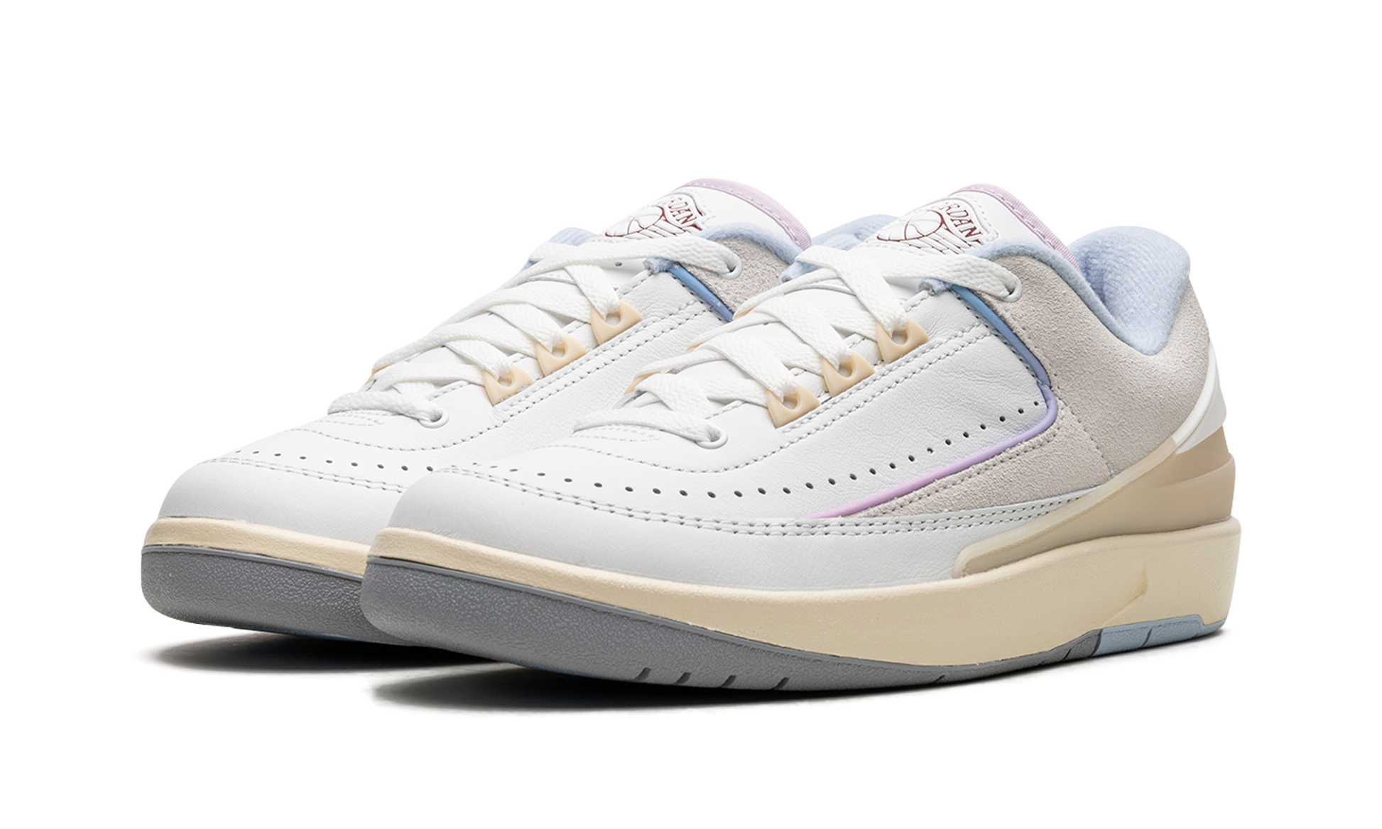The Women's Air Jordan 2 Low “Look Up In the Airâ€?is a women's-exclusive colorway of the retro basketball shoe inspired by one of the model's classic advertisements from 1987. The advertisement in question features an image of Michael Jordan dunking in a white Air Jordan warm-up suit with a blue/purple/pink sky in the background and the phrase “Look. Up In the Airâ€?printed below. The shoe features a white leather construction with grey suede on the collar. Overtures to the aforementioned sky colors come into play on the gradient purple-to-blue piping along the overlay panels and on the lavender hue found on the underside of the tongue. The phrase “Look. Up in the Airâ€?is printed on the insoles. A classic “Wingsâ€?logo appears on the tongue. The cream rubber midsole gives the shoe a vintage look. Release date: June 22. 2023