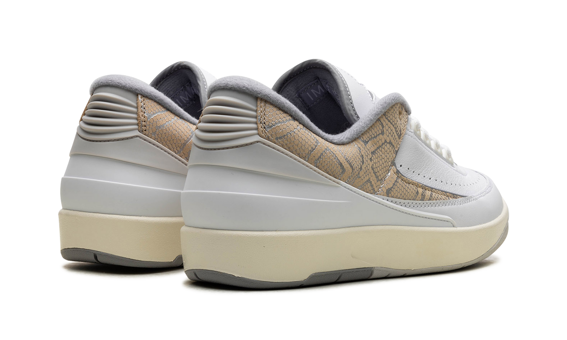 The Air Jordan 2 Low "Python" is the colorway of Michael Jordan's second signature shoe inspired by the Nike Air Python. Originally released in 1987 and said to be a combination of the Nike Air Force 2 and Jordan 2. the Air Python is known for its faux lizard skin material on its design. which is the material that inspires the reptilian detailing on the Jordan 2 Low “Python.â€?The upper has a white leather construction and with a brown-based snakeskin pattern on the mid-panel overlay. An old school grey “Wingsâ€?logo is seen on the tongue. Underfoot. a Sail midsole sits on top a Cement Grey rubber outsole. completing the look. Release date: February 7. 2024