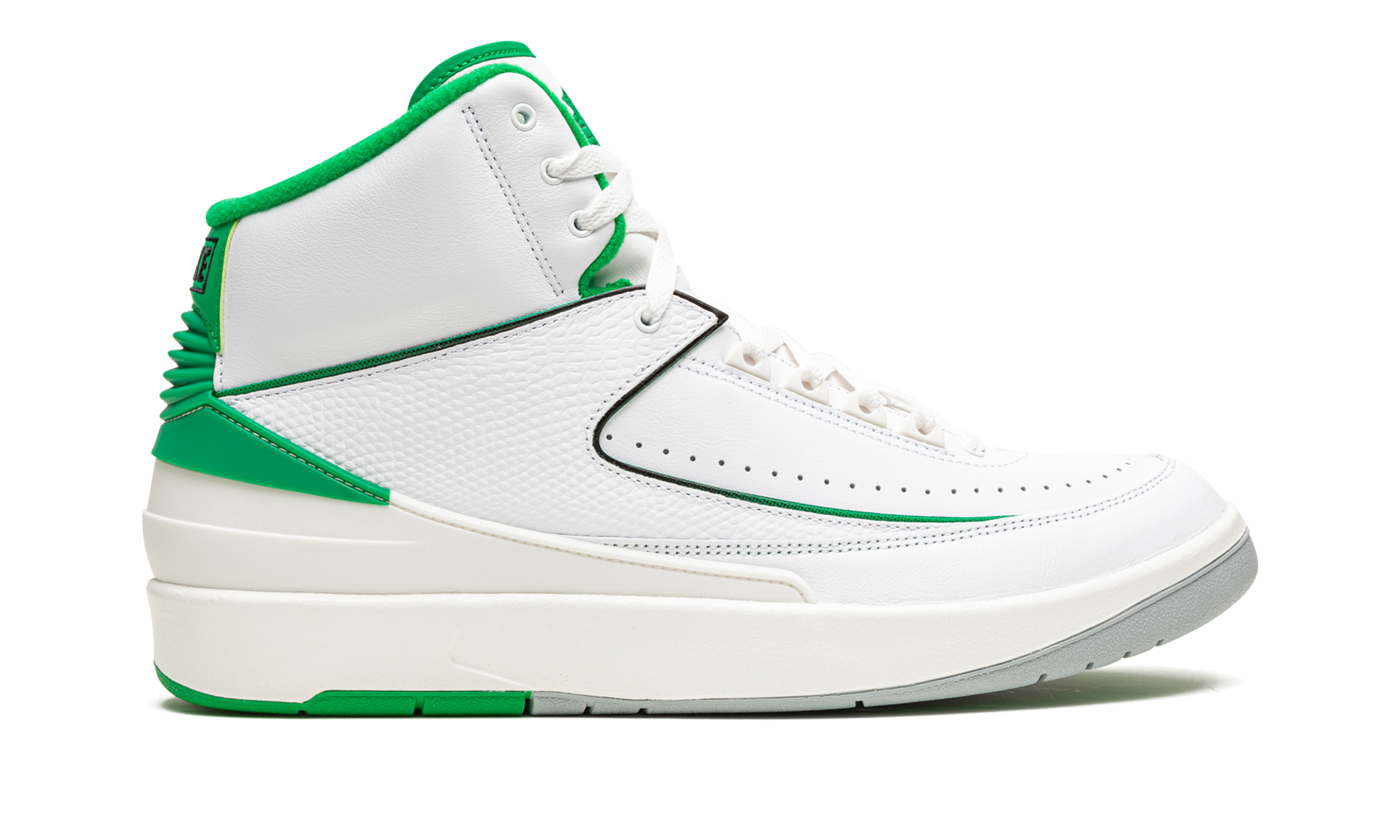 The Air Jordan 2 “Lucky Greenâ€?is a classic look for the retro basketball shoe that is loosely inspired by the Boston Celtics. The “Lucky Greenâ€?is not officially affiliated with the Celtics. but is nonetheless a nod to the storied basketball team as it features its white and green team uniform colors on its design. The Jordan 2 “Lucky Greenâ€?features a white leather base with tonal textured leather overlays. Lucky Green accenting can be found on the heel counter. interior. and on the “Wingsâ€?branding on the tongue. A cream midsole gives the shoe a vintage look. Release date: February 3. 2023