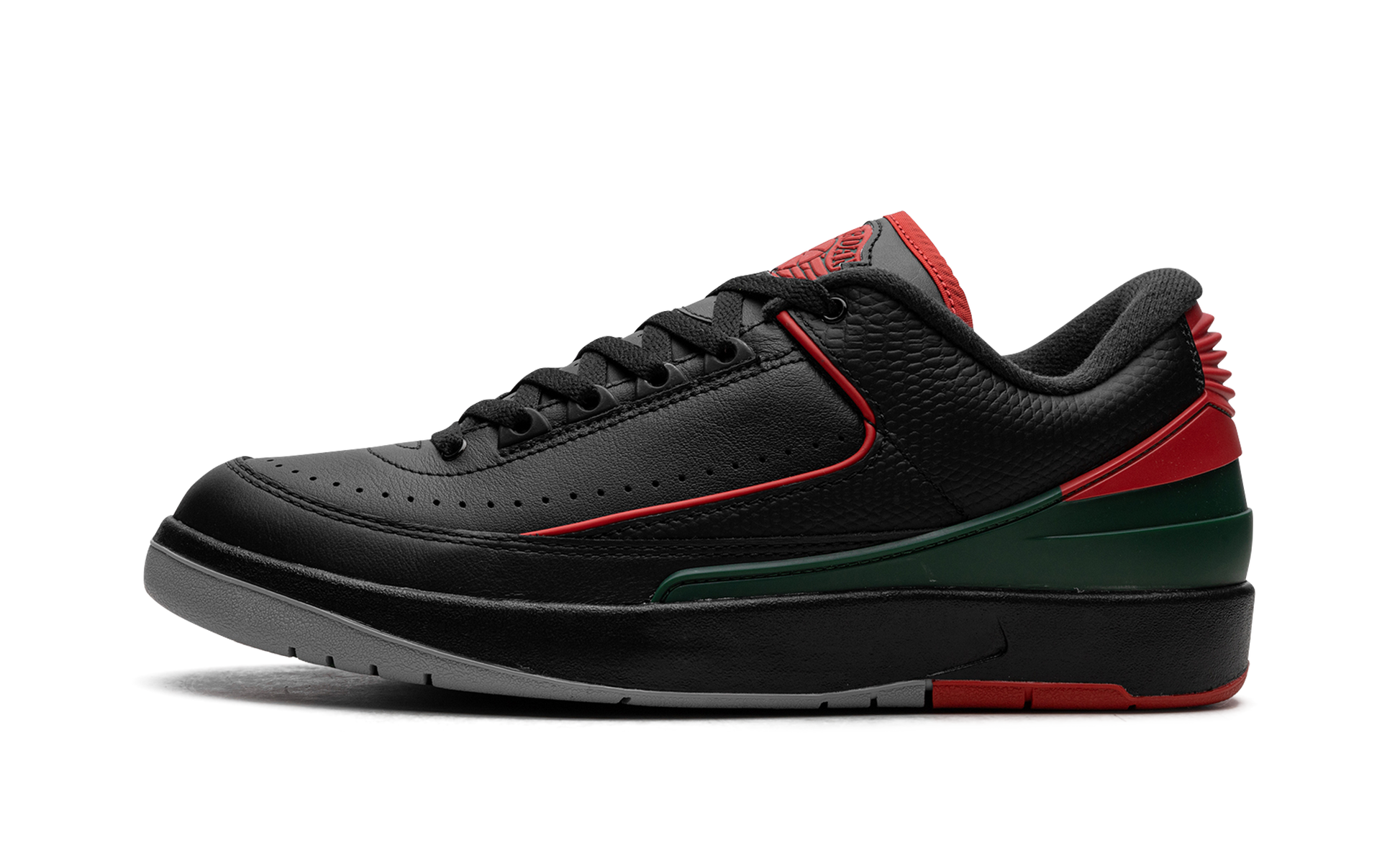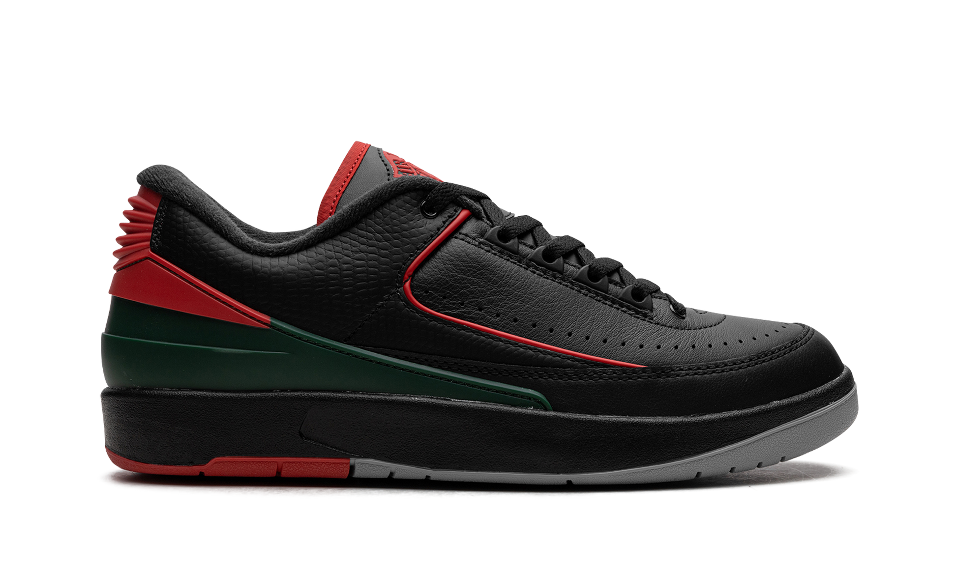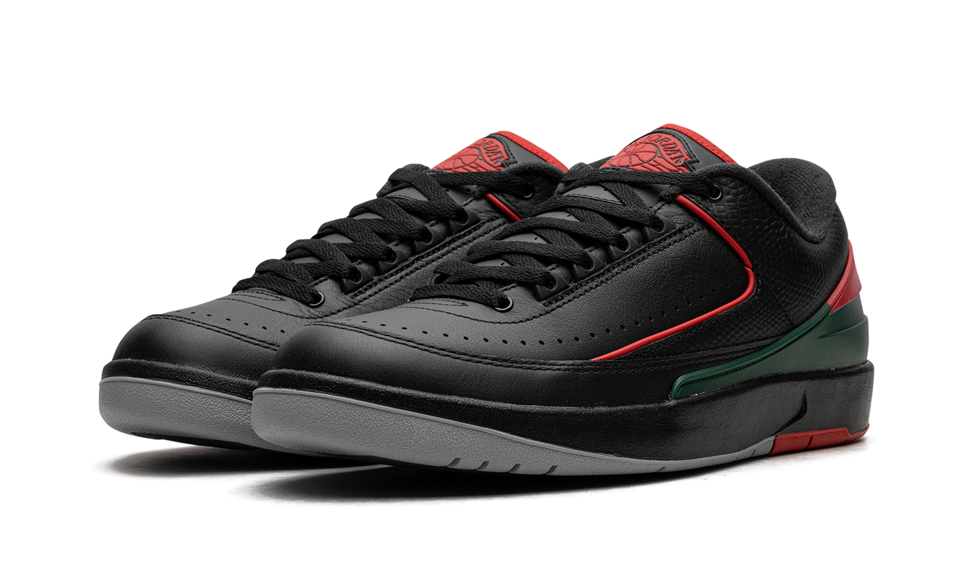 The Air Jordan 2 Low “Christmasâ€?is a colorway of Michael Jordan's second signature shoe inspired by the wintertime holiday. Also said to be inspired by the Jordan 2's original “Made in Italyâ€?roots. the “Christmasâ€?colorway has a black. red. and green color scheme that nods to both Christmas colors and the colors found on the Italian flag. The upper features a black leather construction with red piping on the mid-panel. A red and green heel counter and a “Wingsâ€?logo on the tongue add to the Christmas-inspired look. Underfoot. a black midsole and a grey and red outsole put the finishing touches on the design. Release date: December 16. 2023