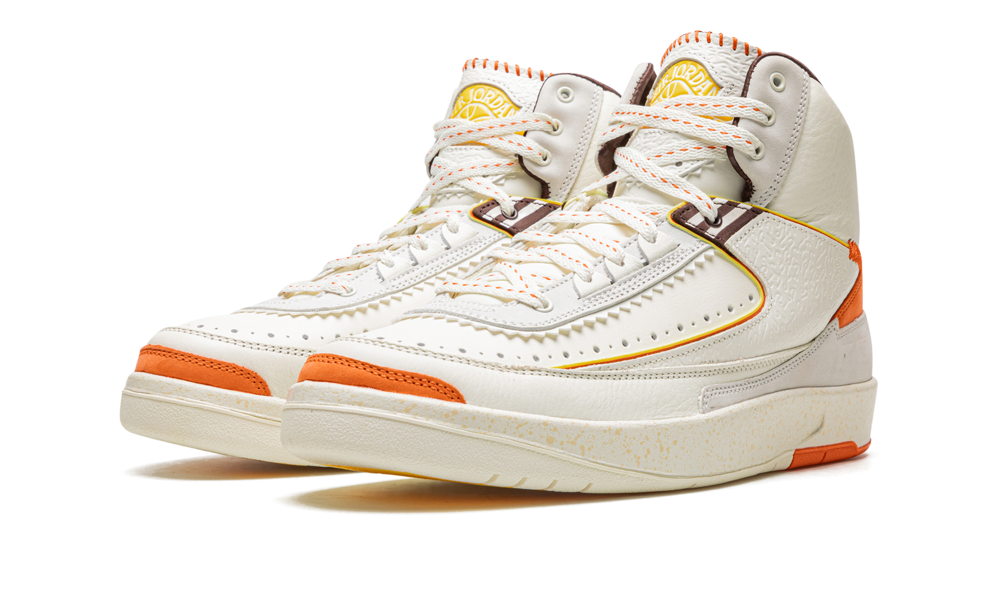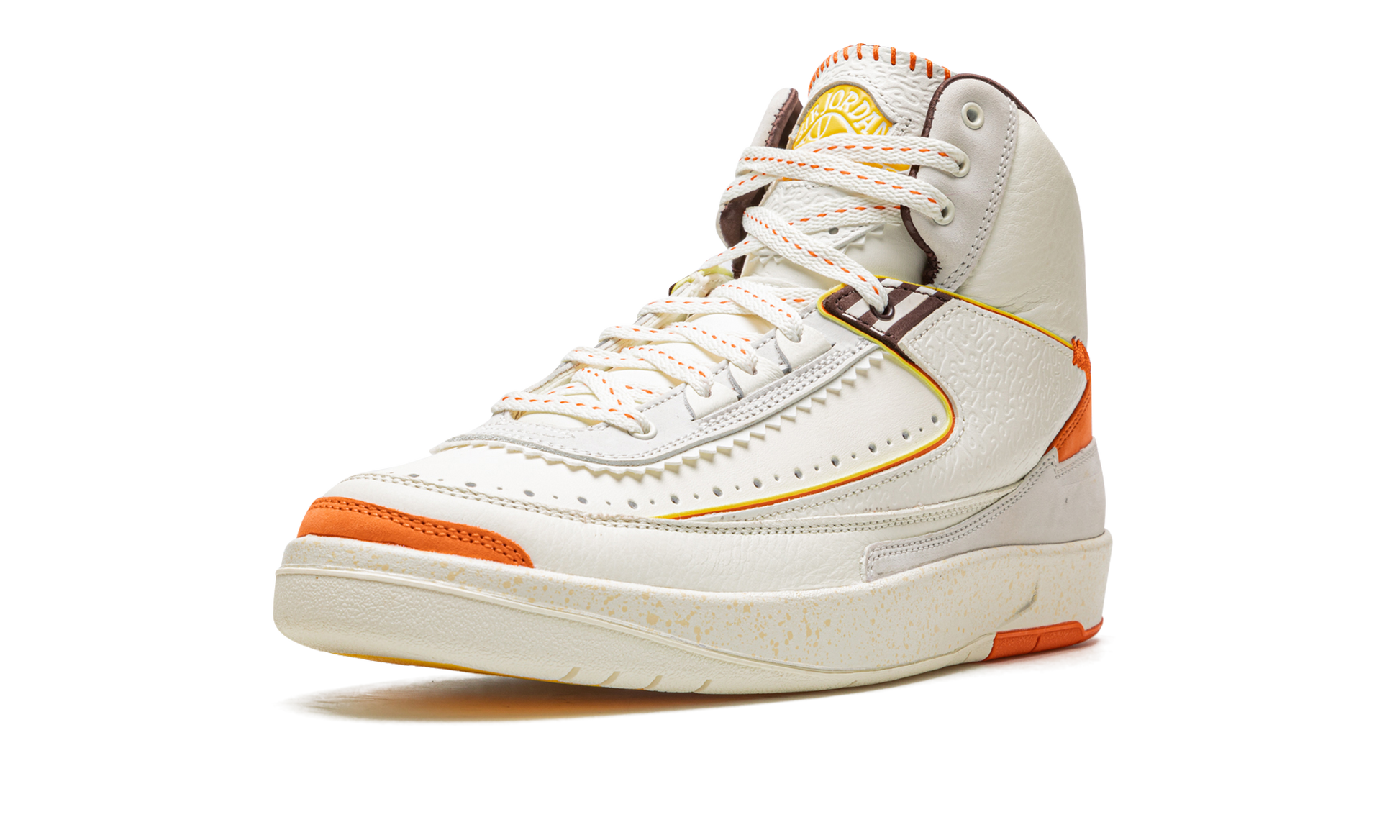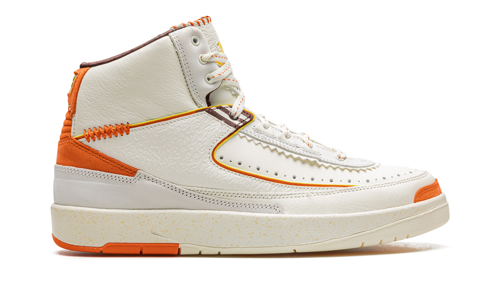 The Maison Chateau Rouge x Air Jordan 2 is one of the many outstanding collaborative editions of the classic Air Jordan model that released in 2022. Designed by Paris-based fashion label Maison Chateau Rouge's founder Youssouf Fofana. this unique edition of the Jordan 2 takes inspiration from African heritage and the union of different cultures in the Chateau Rouge neighborhood of Paris. The impressive colorway features a Sail (off-white) hue across the premium leather upper with many design modifications including a textured midfoot panel. added orange stitching accents. serrated leather detailing. and striped motifs on the lace panel and heel brading. Release date: June 24. 2022