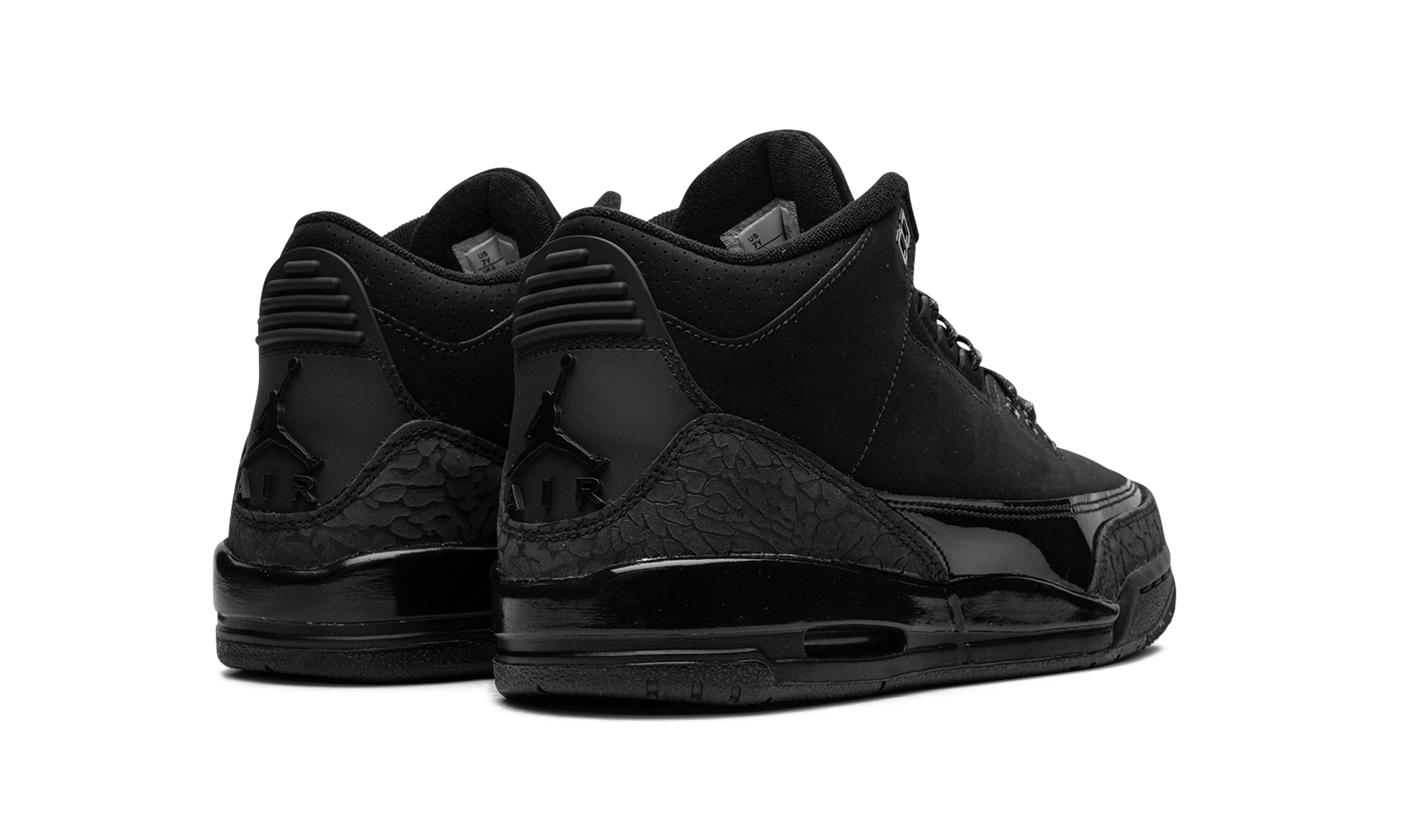 The Air Jordan 3 GS "Black Cat" is a grade school-sized version of the stealth. all-black colorway of Michael Jordan's third signature sneaker. The kids sneaker has all of the details that Jordan 3 fans love. including the elephant print around the heel and toe. and the exposed Air cushioning unit. The AJ3 "Black Cat" also features patent leather accents that help the shoe really stand out.