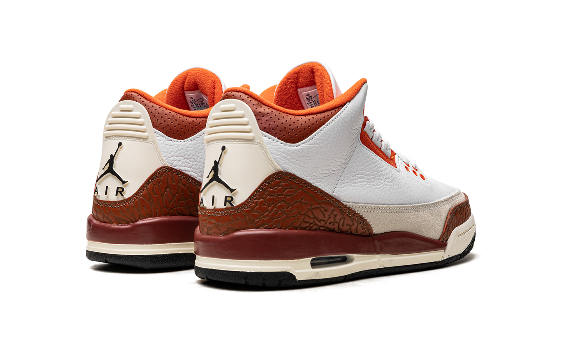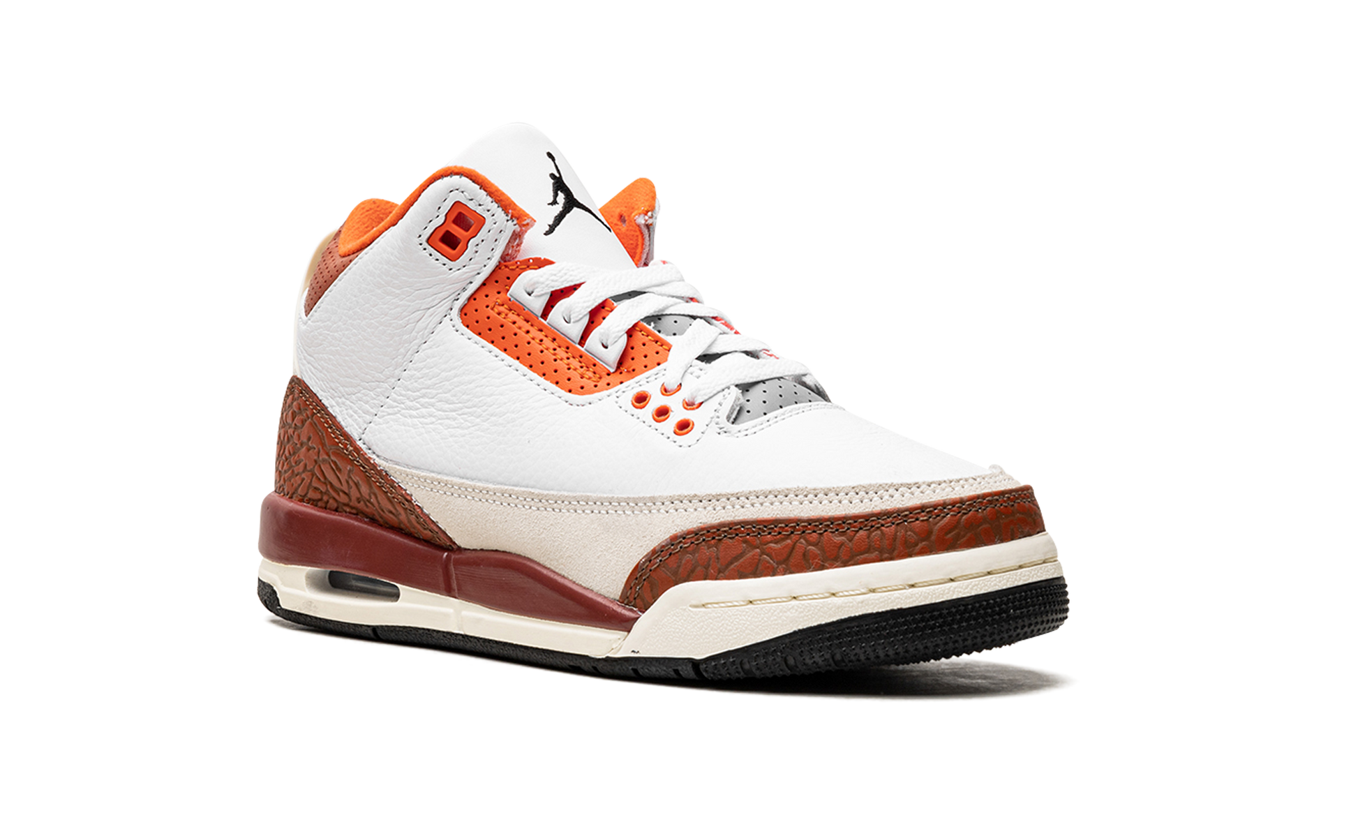 The Air Jordan 3 GS “Dunk on Marsâ€?is a youth release of the classic basketball and lifestyle shoe that takes inspiration from the Red Planet. The Jordan 3 GS “Dunk on Marsâ€?is also inspired by the old school. “What if Mars Blackmon could dunk on Mars?â€?campaign that was centered around Spike Lee's sneaker-obsessed character in the late 1980s. As for the shoe's design. the “Dunk on Marsâ€?features a white tumbled leather construction with contrasting orange-based elephant patterning on its heel and toe. A Sail suede mudguard also contrasts with the neutral-colored leather upper. Fiery orange leather detailing appears on the eyelet panel and collar. A classic Jumpman can be found on the heel and on the tongue. Release date: January 27. 2023