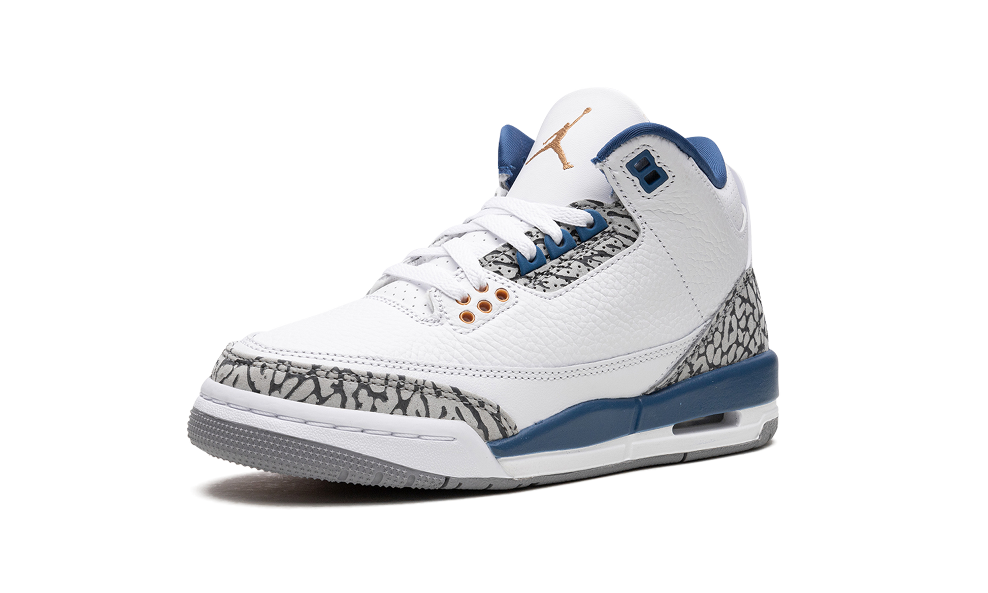 The Air Jordan 3 GS “Wizardsâ€?is the youth sizing of the modern. retail version of the former player exclusive colorway of the Jordan 3 that was worn by Michael Jordan with the Washington Wizards. Originally an unreleased sneaker worn by Jordan during his tenure with the Wizards in the early 2000s. the Jordan 3 “Wizardsâ€?was officially released by Jordan Brand in 2023 with much fanfare. The colorway's white. blue. and elephant print accents nod to the Air Jordan 3 “True Blue'sâ€?color scheme. and its gold accents salute the Wizards' former team uniform colors. The shoe features a white leather construction with classic elephant print on the toe and heel. True Blue detailing comes into play on the eyelet panel and on the mudguard. A gold Jumpman is embroidered on the tongue. Release date: April 29. 2023