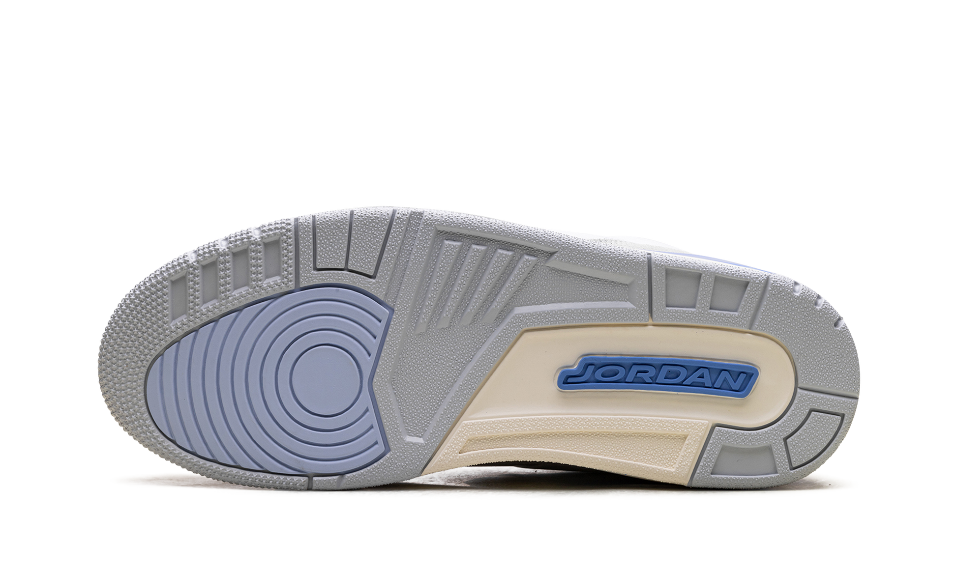 The Air Jordan 3 "Lucky Shorts" is a blue and white colorway of Michael Jordan's third signature shoe. The "Lucky Shorts" AJ3 takes inspiration from a pair of UNC shorts that Jordan wore underneath his NBA uniform during his carer. The upper on this Jordan 3 mixes white leather with off-white suede and adds Carolina blue accents throughout.