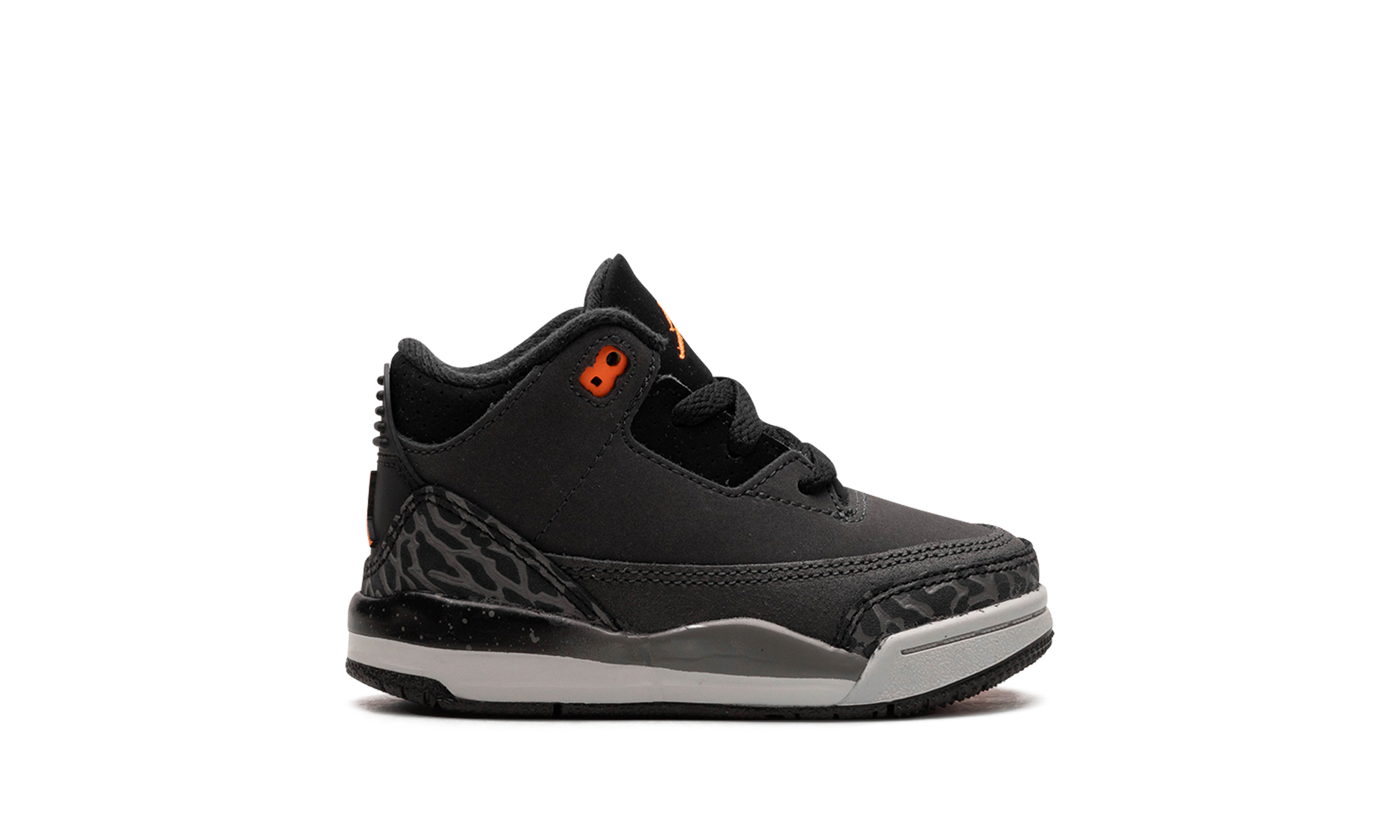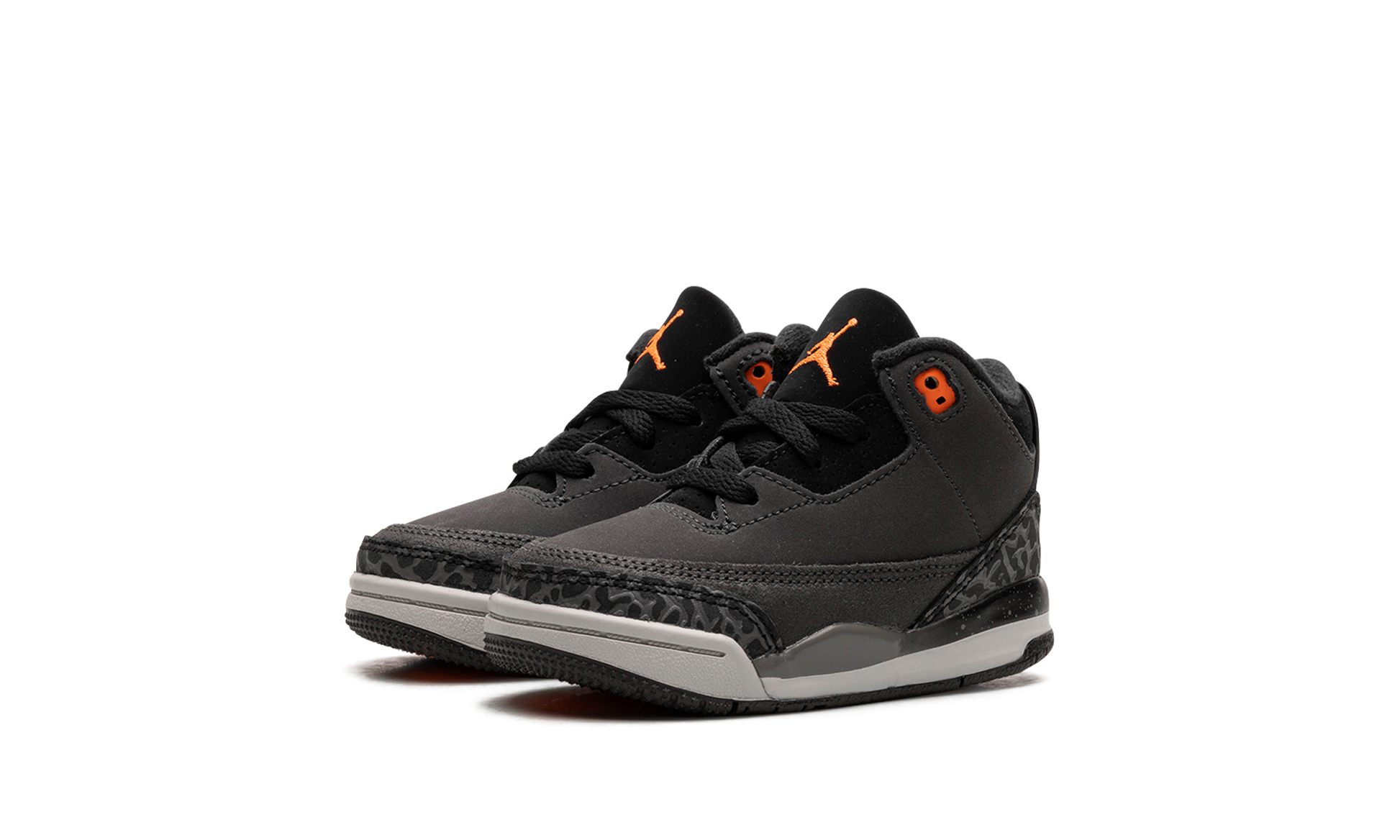 The Air Jordan 3 TD "Fear Pack" is the toddler sizing of the colorway of Michael Jordan's third signature shoe that debuted in 2013 before it was reissued in 2023. Inspired by 2008's “Become Legendaryâ€?campaign that featured Jordan Brand athletes Carmelo Anthony. Derek Jeter. Joe Johnson. and more. the Jordan 3 “Fear Packâ€?or simply “Fearâ€?was originally released alongside an Air Jordan 4 and Air Jordan 5 in “Fearâ€?colorways. As for the Jordan 3 “Fear.â€?the shoe is complete with a Night Stadium suede construction with elephant print on the toe and heel. Total Orange accents are found on the eyelets. on the Jumpman on the tongue and on the heel. and on the rubber outsole. A black mudguard with speckle detailing completes the look. Release date: November 25. 2023
