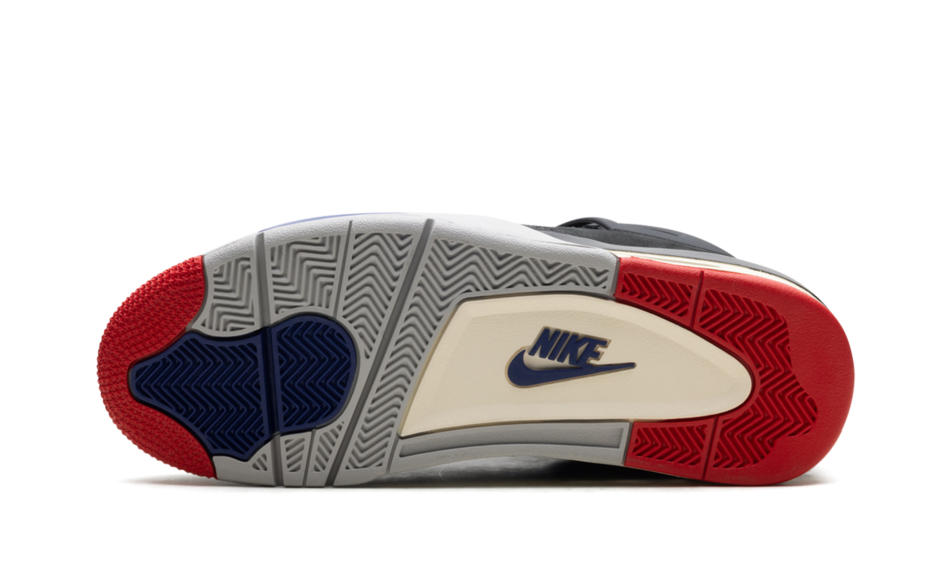 The Air Jordan 4 "Rare Air 2025" is a distinctive colorway of Michael Jordan's fourth signature shoe. This Jordan 4 has a primarily black upper that is accented with pops of blue and red. The 2025 "Rare Air" AJ4 incorporates the signature design details of the Air Jordan 4. including the mesh panels and wings on the side. Nike Air branding appears on the heel. The Air Jordan 4 "Rare Air" also stands out because of the removable patches on the tongue.