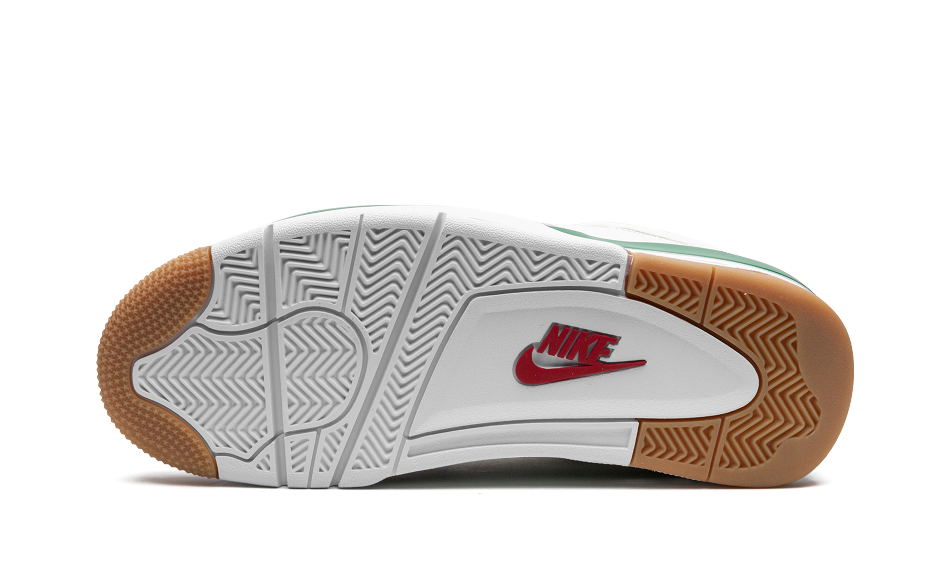 The Air Jordan 4 SB “Pine Greenâ€?is an alternate version of the retro basketball shoe that's updated with a performance skateboarding focus. A collaboration between Nike SB and Jordan Brand on Michael Jordan's fourth signature shoe. the Jordan 4 SB is designed in a smooth white leather upper with a light grey suede overlay on the toe and forefoot. Contrasting Pine Green detailing appears on the heel counter with “Nike SBâ€?branding and on the plastic eyelets. Tonal mesh is found on the mid-panel and tongue. A red Jumpman is located on the tongue. Release date: March 20. 2023