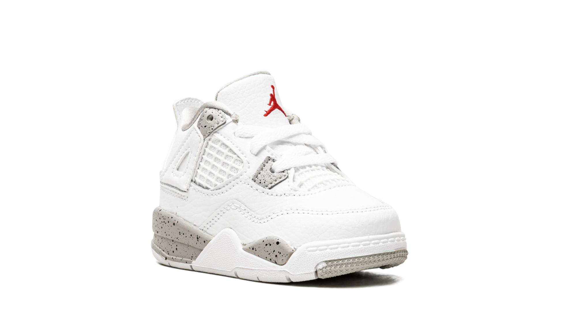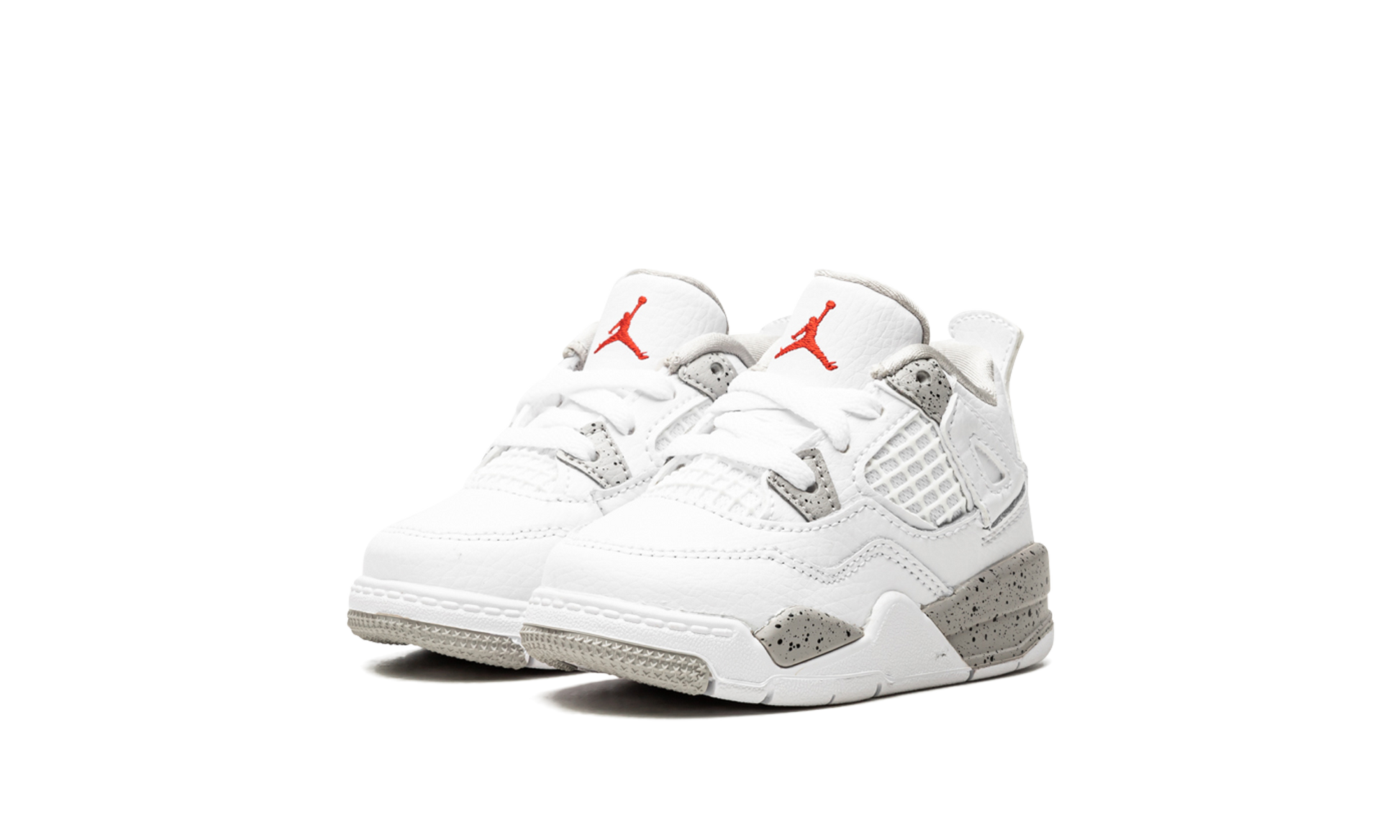 The Jordan 4 TD “White Oreoâ€?is the toddler sizing of the Summer 2021 release by Jordan Brand that marries design principles of two popular colorways of Michael Jordan's fourth signature shoe. The sneakers we're referring to are the Jordan 4 “Oreoâ€?and “White/Cement.â€?which are combined together to create the predominantly monochromatic white design of the “White Oreo.â€?Specifically. the “White Oreoâ€?displays the same white tumbled leather construction with cement grey speckling on the eyelets and painted midsole as the legendary “White/Cement.â€?White netting appears on the mid-panel and on the tongue. The model's signature “wingsâ€?are dipped in white and a Fire Red Jumpman is embroidered on the white leather tongue. A metallic silver Jumpman adorns the heel. Release date: July 3. 2021