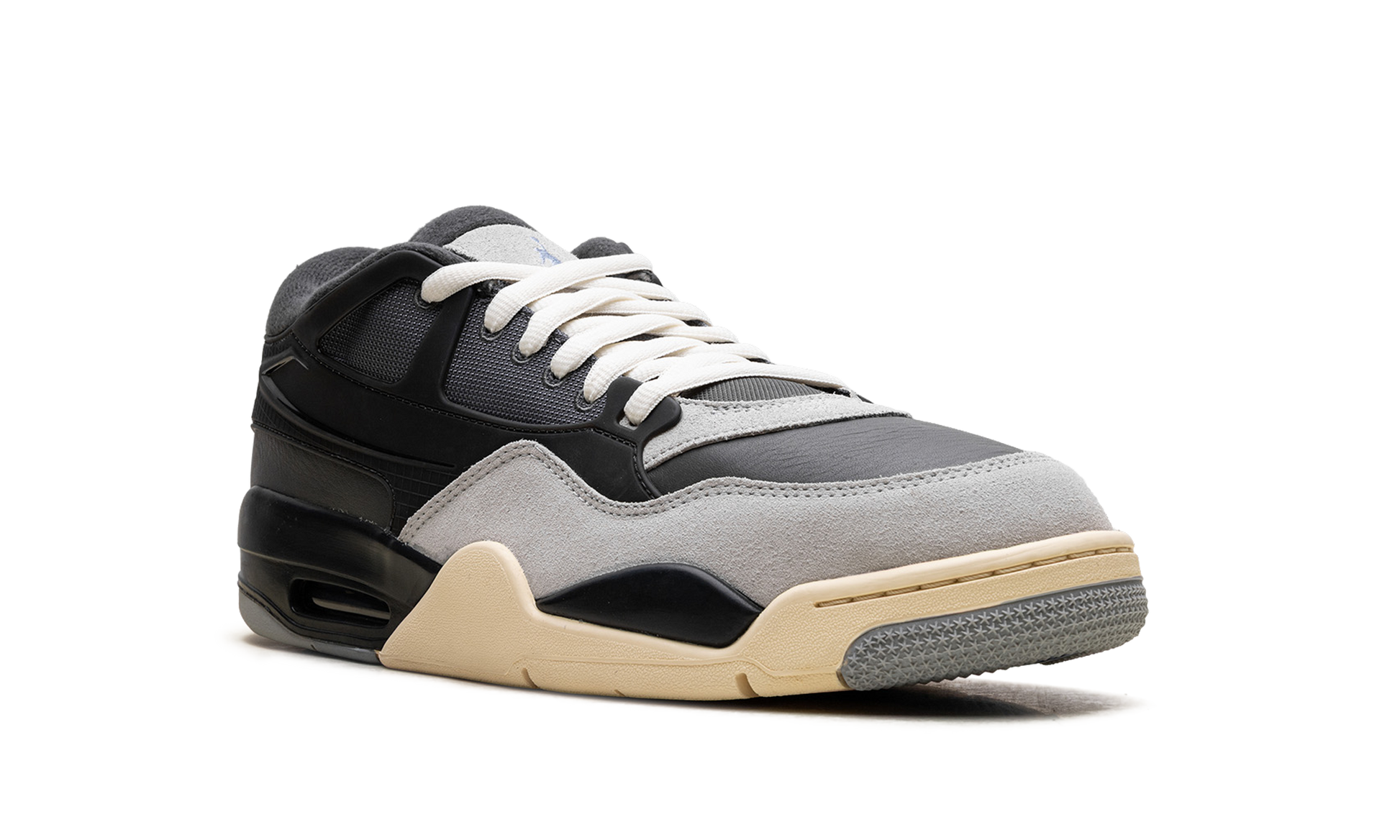 Prepare to dominate your everyday commute with the Air Jordan 4 RM "Iron Grey". This remix model reimagines the iconic AJ4 silhouette for life on the go. centering on both comfort and durability. It features a sleek Iron Grey colorway. built with a genuine leather upper and a strong. flexible cage wrapping the shoe for added toughness. Max Air cushioning in the heel provides plush support. while subtle Chambray Blue accents on the outsole add a touch of sophistication to this street-ready classic.