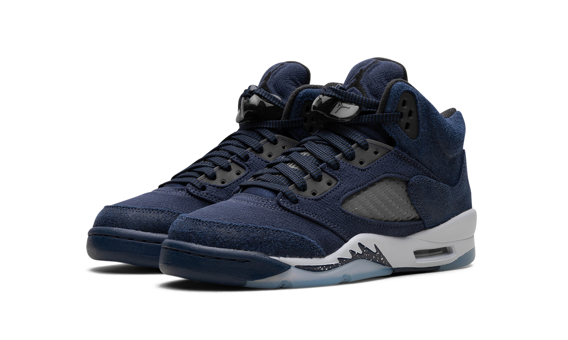 The Air Jordan 5 GS "Midnight Navy" is the youth sizing of Michael Jordan's fifth signature shoe in a colorway with a predominately navy-based look. The Jordan 5 debuted way back in 1990 and throughout the years. has been one of the most popular retro Air Jordan sneakers in Jordan Brand's collection due to collaborations with brands like Off-White and colorways like the “Midnight Navy.â€?The upper features a Midnight Navy textile construction with smoky translucent netting on the mid-panel and tongue. A black Jumpman is embroidered on the tongue and on the heel. Underfoot. the white midsole's classic shark tooth detailing is designed in navy with white speckling. An icy blue translucent rubber outsole completes the look. Release date: November 10. 2023