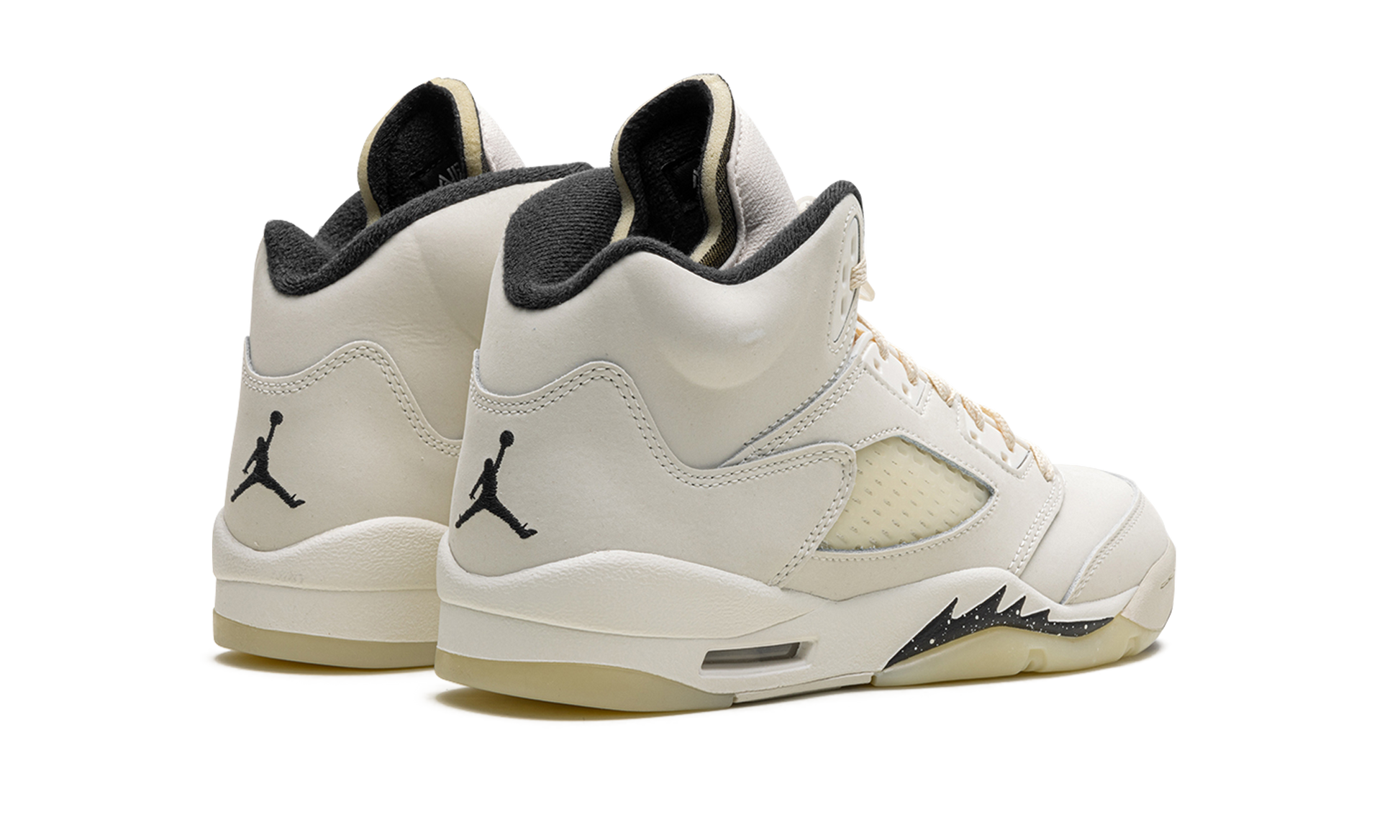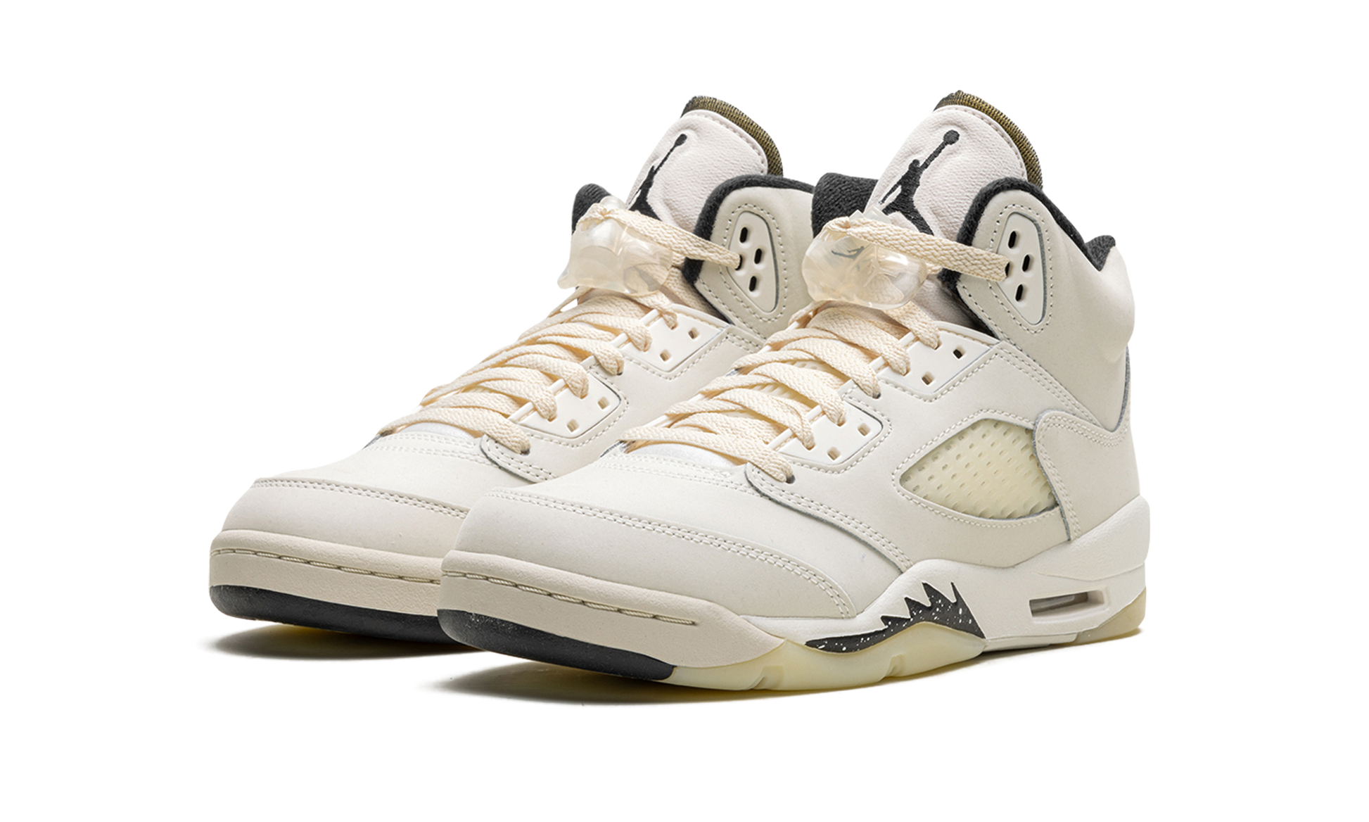 The Air Jordan 5 SE GS "Sail" is the youth sizing of Michael Jordan's fifth signature shoe with a versatile design. The “Sailâ€?features a Sail leather base with Coconut Milk-colored accents on the netting found on the tongue and mid-panel. Contrasting black detailing is found on the Jumpman on the tongue. as well as on the inner lining. and Jumpman on the heel. Moreover. additional black detailing can be found on the speckled shark tooth design on the forefoot of the midsole. Underfoot. a Coconut Milk rubber outsole gives the shoe a classic. slightly aged aesthetic that ties into the Jordan 5's old school vibe. Release date: April 13. 2024