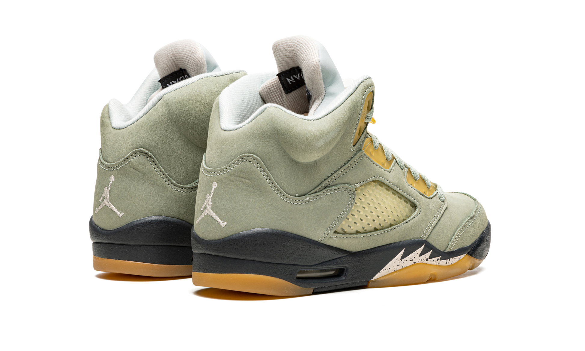 The Air Jordan 5 GS “Jade Horizonâ€?was released in March 2022 and is a colorway of the vintage basketball shoe with retro-inspired details. A versatile look for the popular lifestyle shoe worn by Michael Jordan with the Chicago Bulls in 1991. the Jordan 5 in “Jade Horizonâ€?has a Jade Horizon-colored leather construction. The eyelet panels. lace toggle. and outsole feature a vintage-inspired. oxidized appearance. A white Jumpman is embroidered on the silver reflective tongue that shines when exposed to light in the dark. Additionally. a white Jumpman is embroidered on the heel. Finishing touches include a black painted midsole with white “shark toothâ€?detailing with black speckling on the forefoot. Release date: March 25. 2022