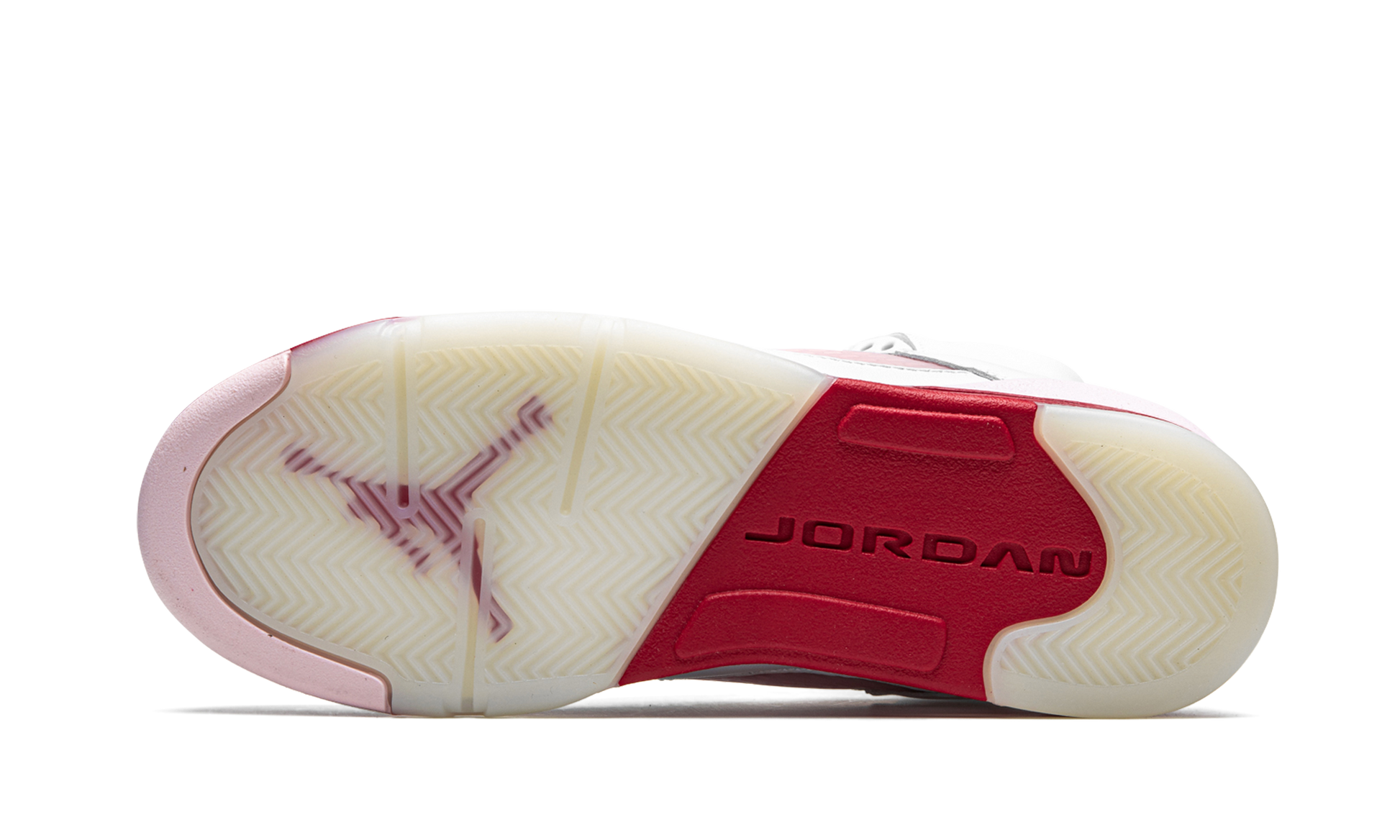 The Air Jordan 5 GS “Pink Foamâ€?is the youth sizing of Michael Jordan's fifth signature model in a colorway designed with the young lady Jordan fans in mind. A Fall 2020 release. the “Pink Foamâ€?is one of several new makeups that have been released in celebration of the Jordan 5's 30-year anniversary. The upper features a smooth white leather build in the spirit of the original “Fire Redâ€?design from 1990. Like that version. red accenting can be found on various points of the shoe. though the Gym Red used here is slightly darker in hue than the "OG" look. Other details include Pink Foam semi-translucent netting on the throat. mid-panel. and mudguard. Classic Jumpman embroidery dots the heel and tongue. A clear lace lock can be found on the laces. and pink shark tooth detailing appears on the red midsole. Release date: October 9. 2020.